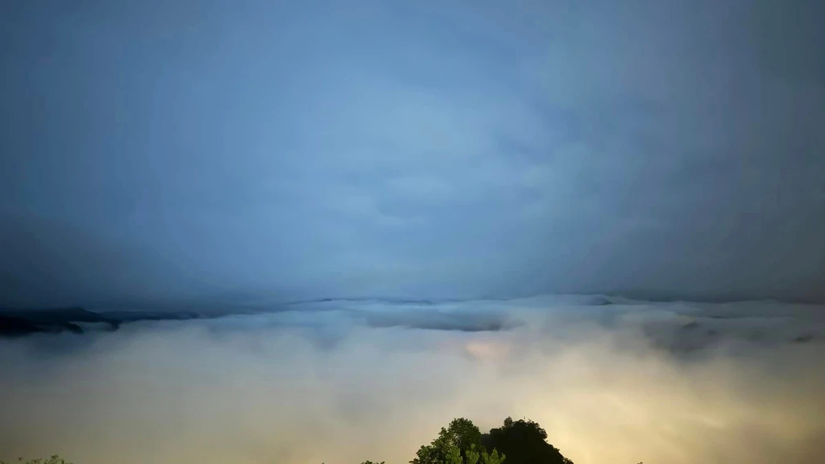 Nhờ địa hình cao và điều kiện thời tiết thuận lợi, đỉnh Mu Náu thường xuyên xuất hiện hiện tượng mây tích tụ dày vào sáng sớm. Từ khoảng 5h đến 6h, những khối mây trắng xóa trôi lững lờ dưới chân núi, tạo nên khung cảnh "biển mây" bồng bềnh, khiến nhiều du khách không khỏi choáng ngợp. Ảnh Tiệm cà phê Mu Náu Ơi