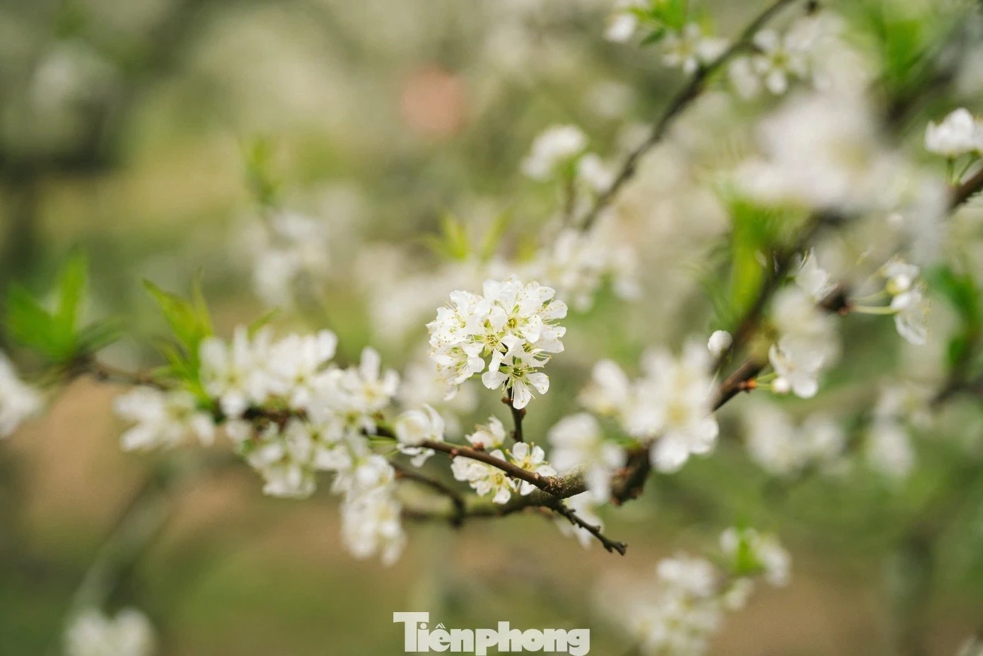 Giữa làn sương bảng lảng đặc trưng của cao nguyên, từng chùm hoa mận trắng muốt bung nở, ẩn hiện trên các sườn đồi. Khung cảnh này không chỉ mang đến một trải nghiệm thị giác ấn tượng mà còn thu hút đông đảo du khách từ khắp nơi đến tham quan, chụp ảnh và tận hưởng không gian yên tĩnh của núi rừng Tây Bắc.