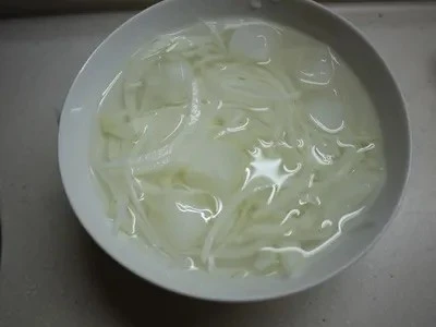 Bước 1: Cắt nấm sò vua thành từng dải, chần sơ trong 2 phút, sau đó vớt ra và ngâm vào chậu nước lạnh để nấm giòn hơn. Sau đó vớt nấm ra, vắt bớt nước thừa, để dùng sau. Cắt hành tây thành từng lát mỏng và ngâm trong nước đá để khử mùi hăng. Dưa chuột rửa sạch, cắt thành các đoạn rồi loại bỏ ruột sau đó thái sợi.