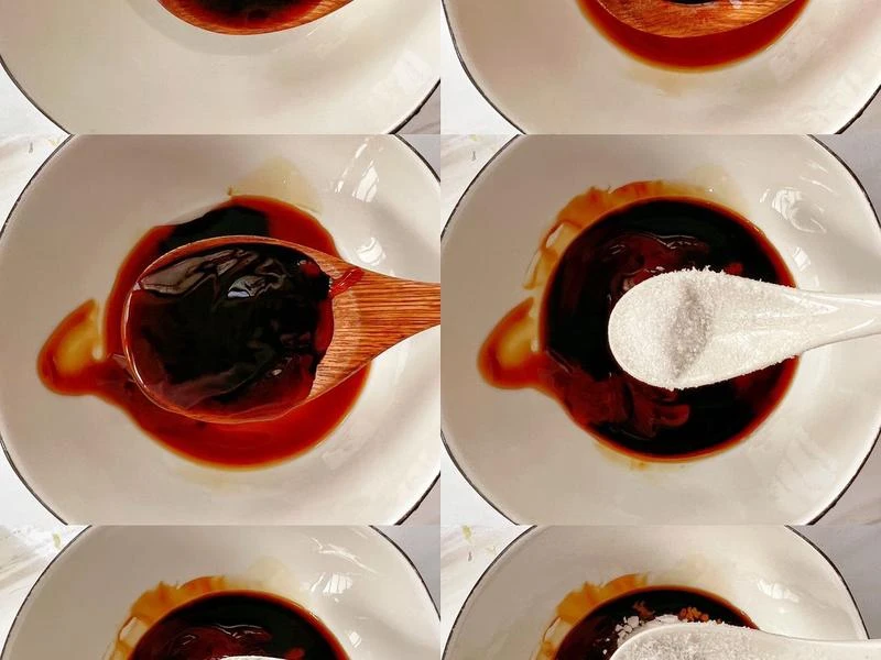 Món ăn này nên sử dụng càng ít gia vị có màu sẫm càng tốt, chẳng hạn như nước tương đen và giấm balsamic. Chúng ta chỉ dùng một lượng nhỏ nước tương ở đây đủ để tạo màu vàng nhạt khi ngấm vào nấm.