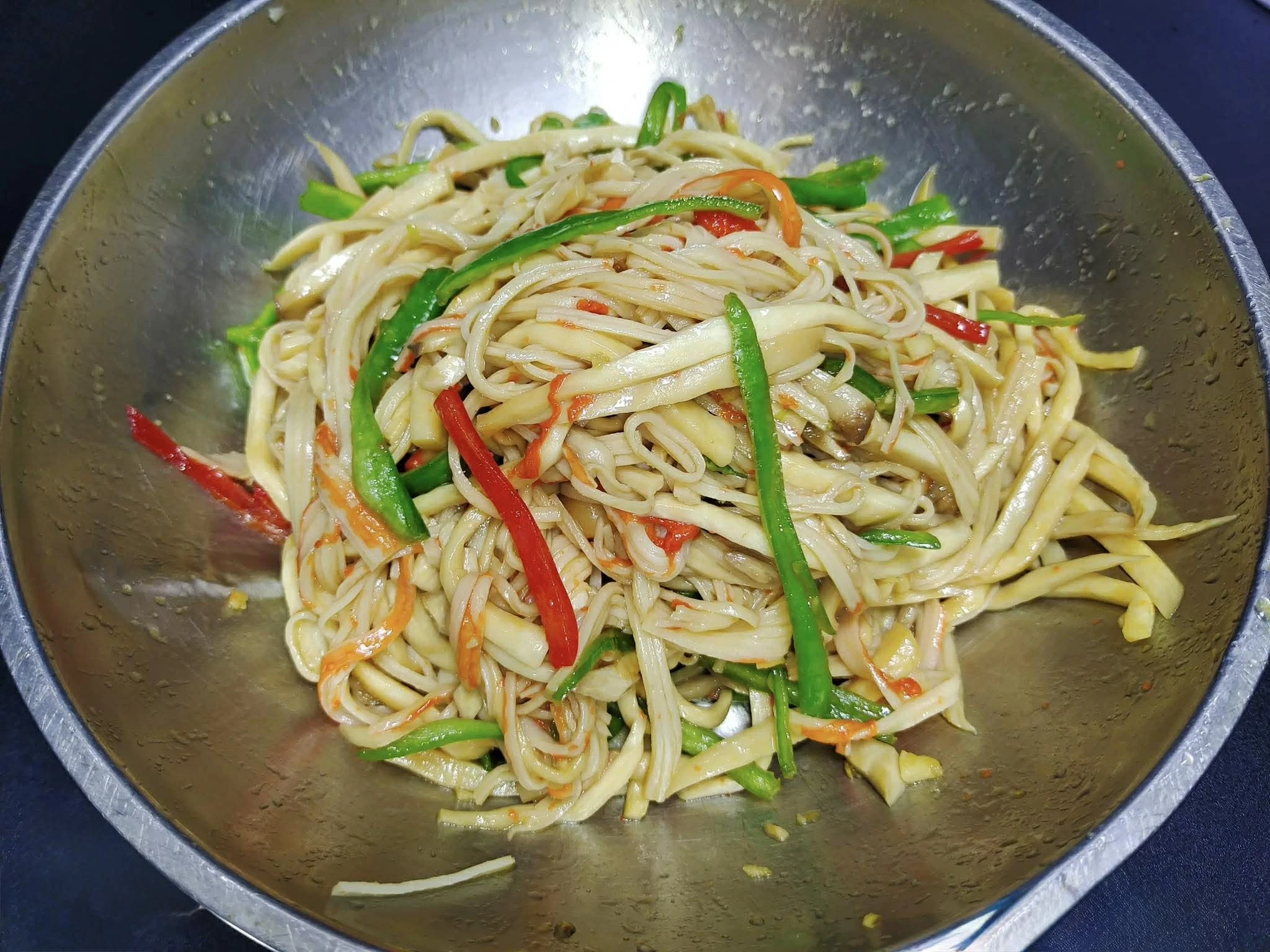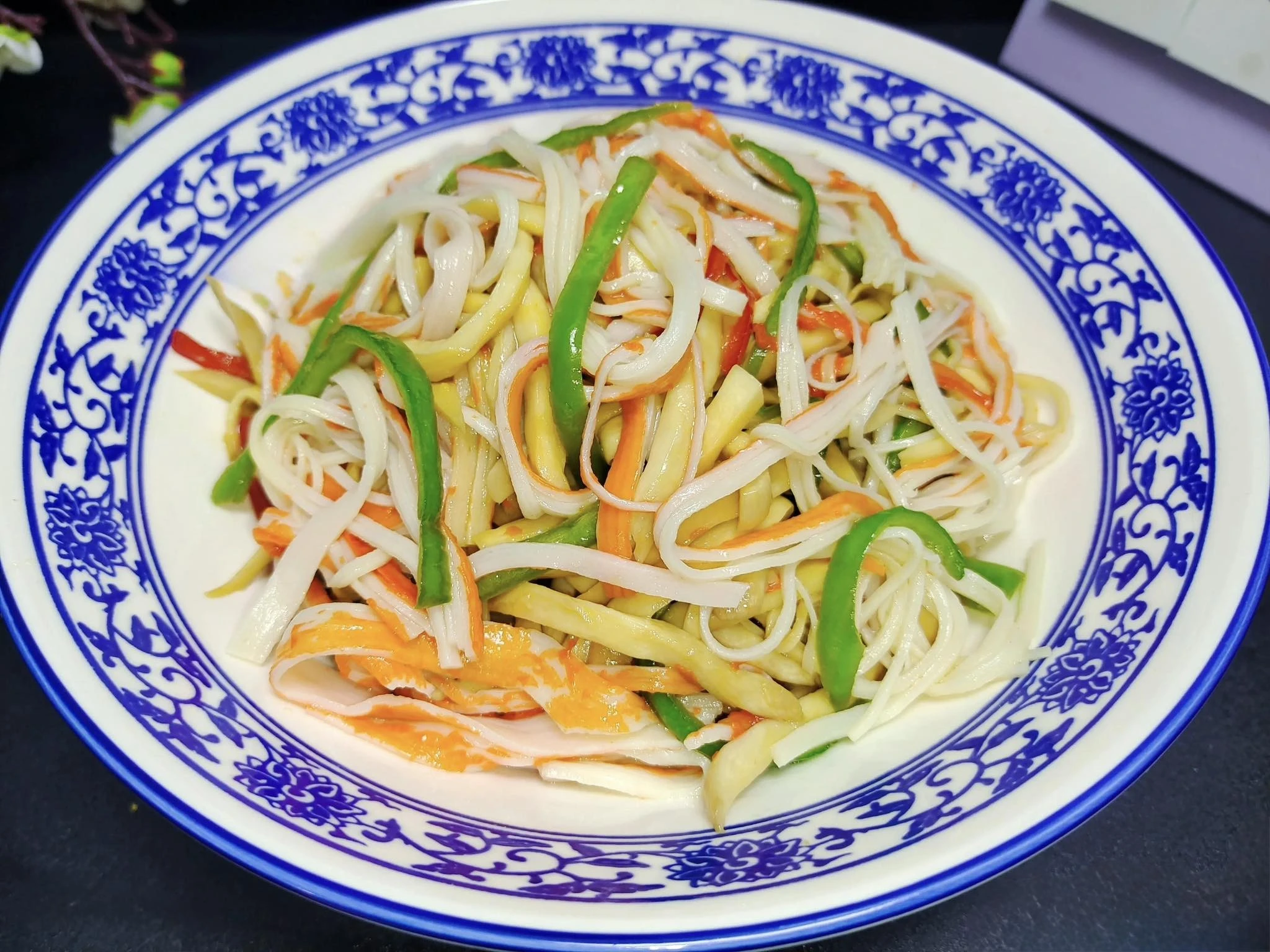 Thành phẩm món nấm đùi gà trộn thanh cua và ớt chuông