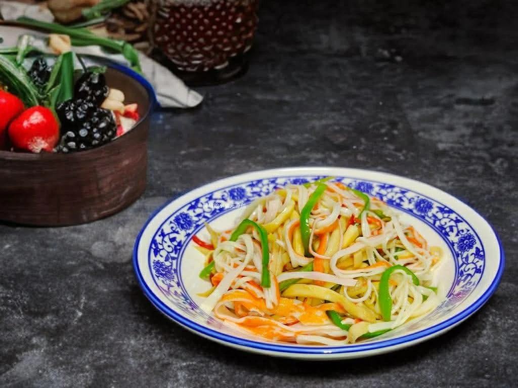 Đây là một món trộn được chế biến rất đơn giản với các nguyên liệu thông dụng mà ai cũng có thể làm được. Món ăn có vị ngọt của thanh cua, độ giòn của nấm đùi gà và hương thơm tươi mát từ ớt chuông xanh. Toàn bộ món ăn rất thanh mát và ngon miệng. Hãy làm món này trong dịp Tết Nguyên đán để thêm một món ăn ngon vào những bữa cơm đoàn viên của gia đình bạn. Rất đáng để thử.