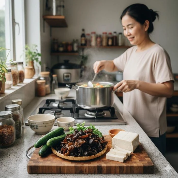 Món ăn từ dưa leo, nấm mèo và đậu hũ thanh đạm, giàu dinh dưỡng, lại cực kỳ thân thiện với người bệnh gout.