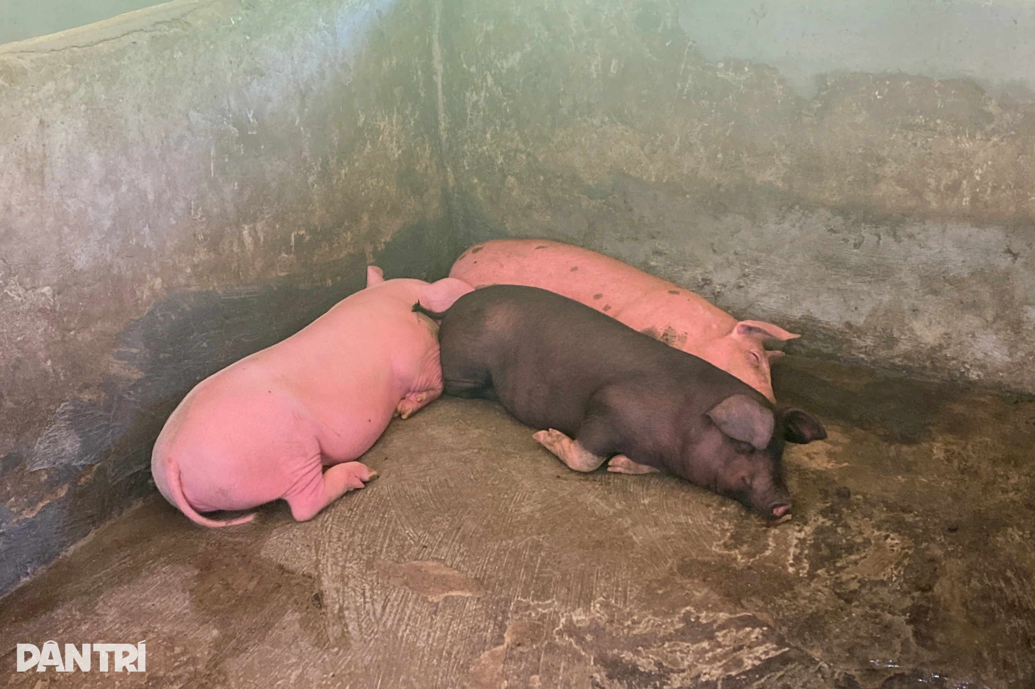 Những con lợn còn lại trong chuồng nuôi của gia đình ông Hùng nằm im lìm, bỏ ăn (Ảnh: Vi Thảo).