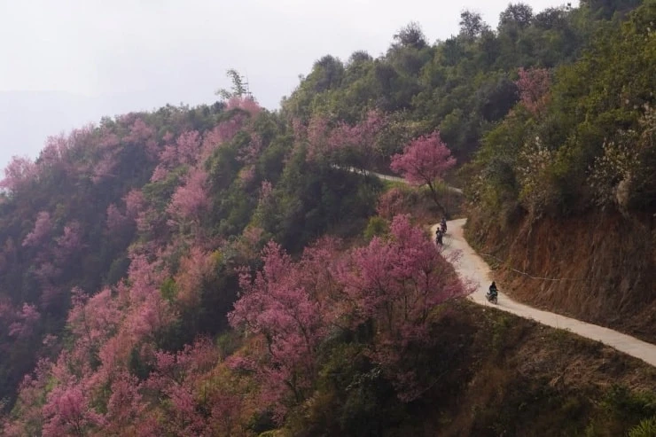 Ngay từ khi di chuyển dọc theo các cung đường đèo uốn lượn, du khách đã có thể bắt gặp những vạt đào rừng hồng thắm lấp ló trên triền núi, báo hiệu một mùa hoa đang đến rất gần. Sắc hoa hiện diện ở khắp mọi nơi, từ những thung lũng xa xôi, trên sườn đồi cho đến len lỏi vào các con ngõ nhỏ ngay tại trung tâm.