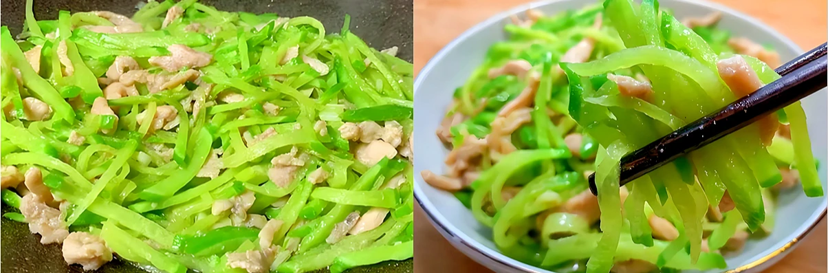 1. Củ cải xanh thái sợi xào thịt heo - giòn tan, thanh mát