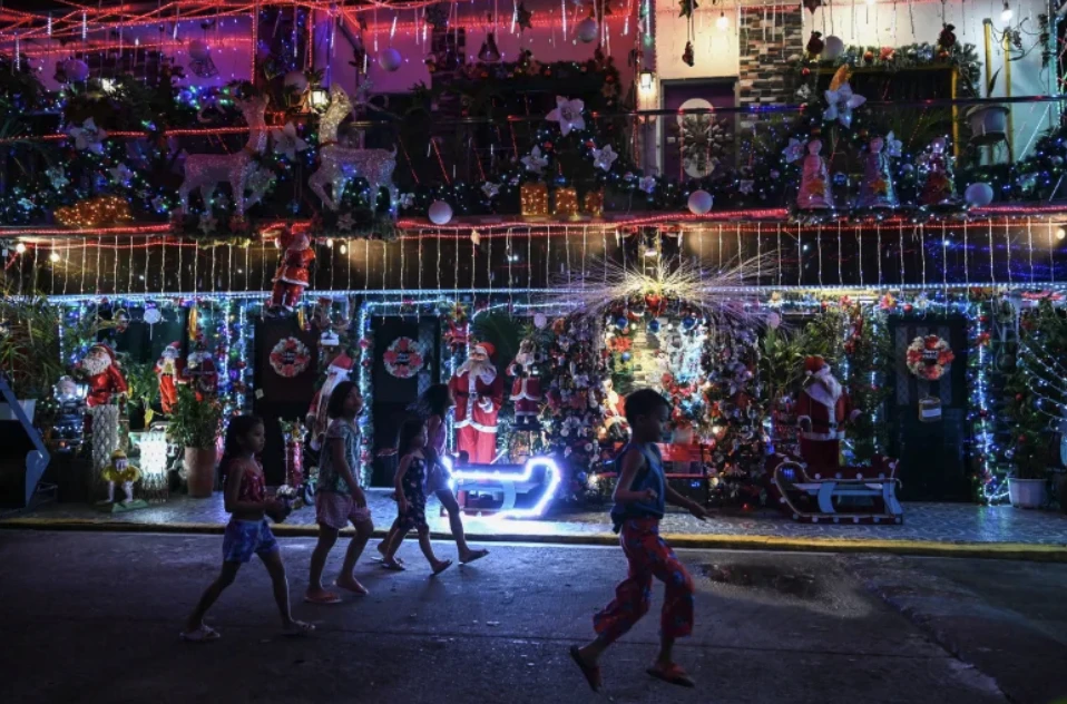 Trẻ em đi ngang qua một ngôi nhà trang trí Giáng sinh ở Manila. Ảnh: AFP/Getty Images