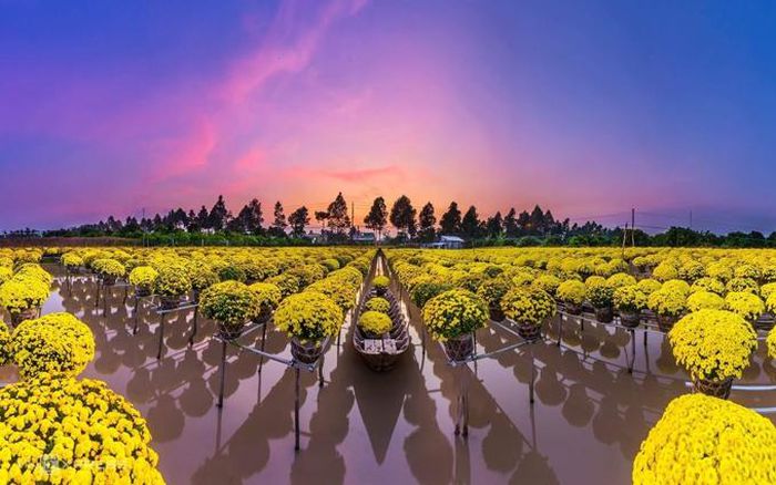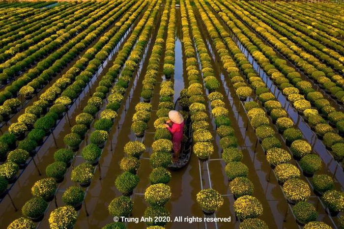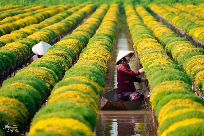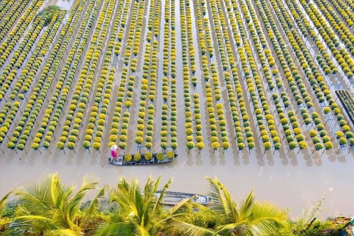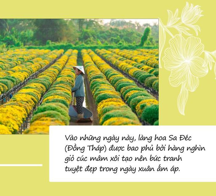 Làng hoa Sa Đéc – Đồng Tháp, vựa hoa lớn nhất miền Tây là địa điểm đẹp nhất để chiêm ngưỡng sắc vàng của cúc mâm xôi. Những dãy cúc mâm xôi từ vườn nhỏ tới vườn lớn nở rộ trong cái nắng ấm áp của miền Tây là khung cảnh đẹp khiến ai cũng muốn về Sa Đéc mùa hoa này.