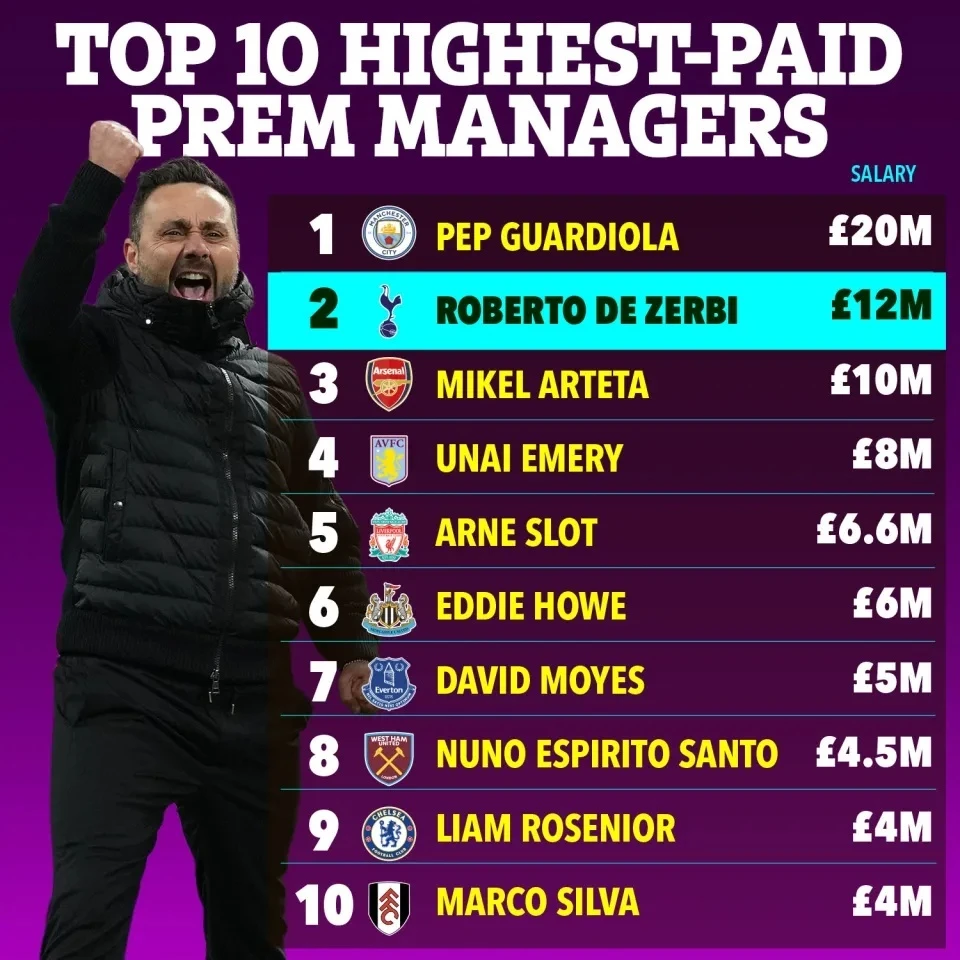 Theo truyền thông Anh, chiến lược gia 46 tuổi nhận mức lương lên tới 12 triệu bảng/năm, vượt cả những HLV dẫn dắt các đội trong nhóm đầu bảng như Mikel Arteta (10 triệu bảng/năm), Aston Villa (8 triệu bảng/năm) hay Arne Slot (6,6 triệu bảng năm).