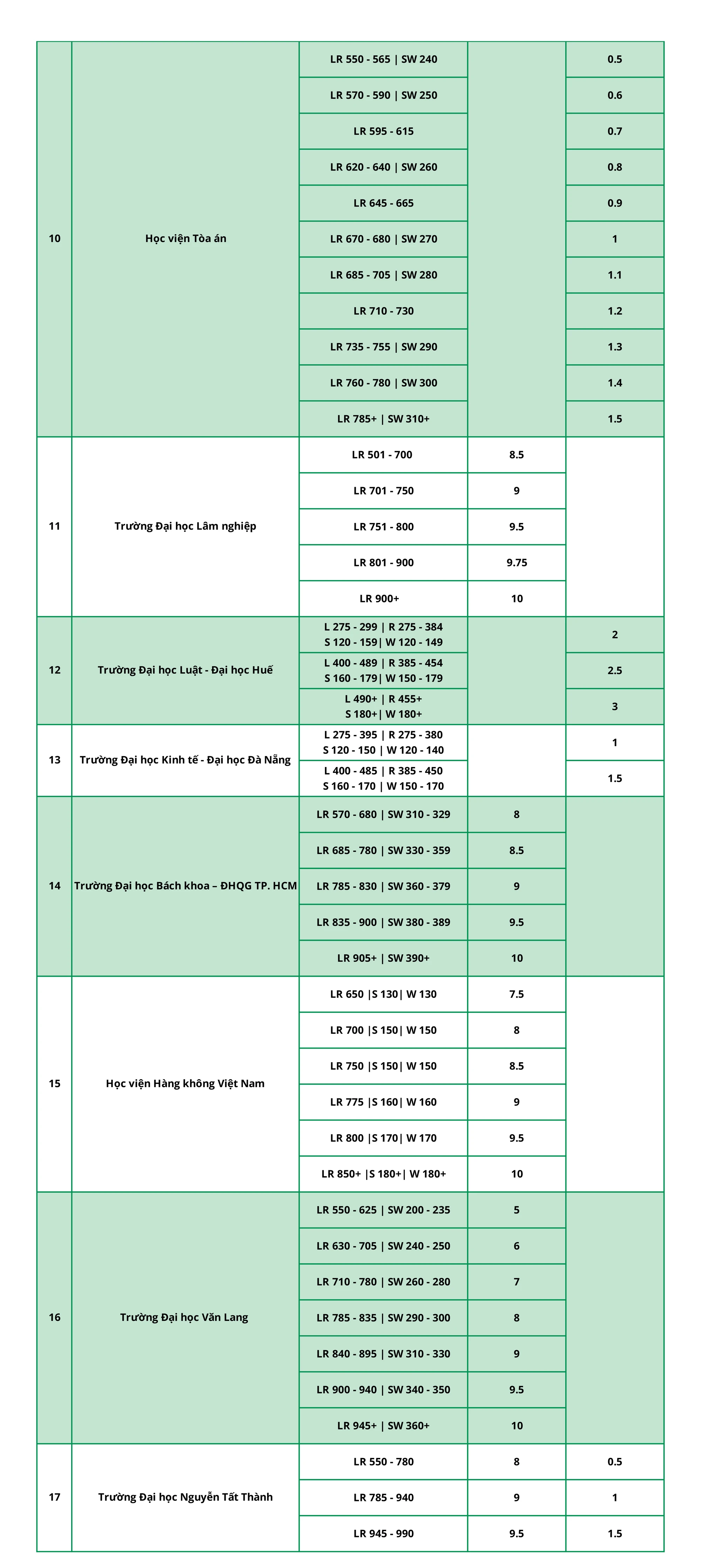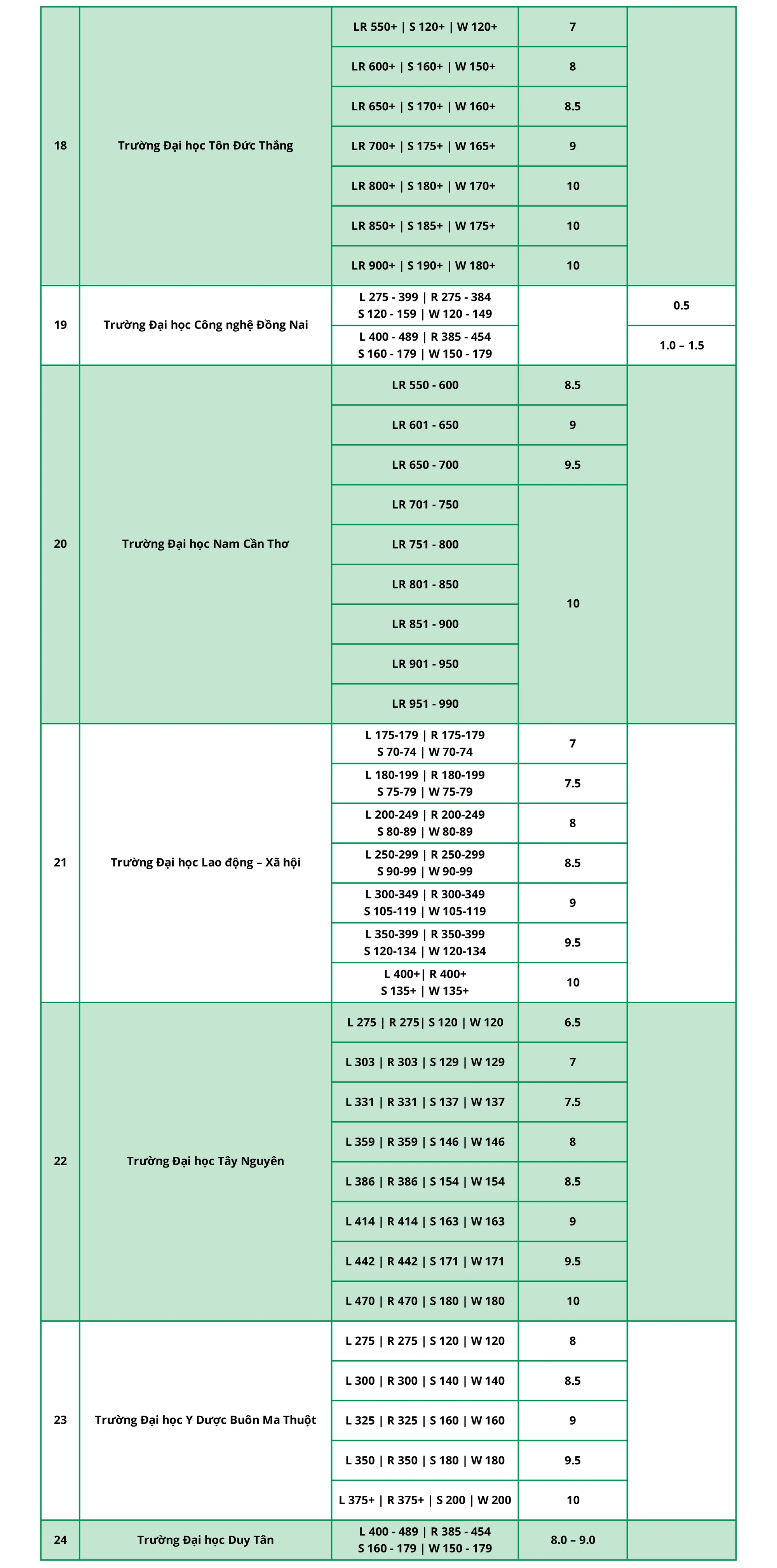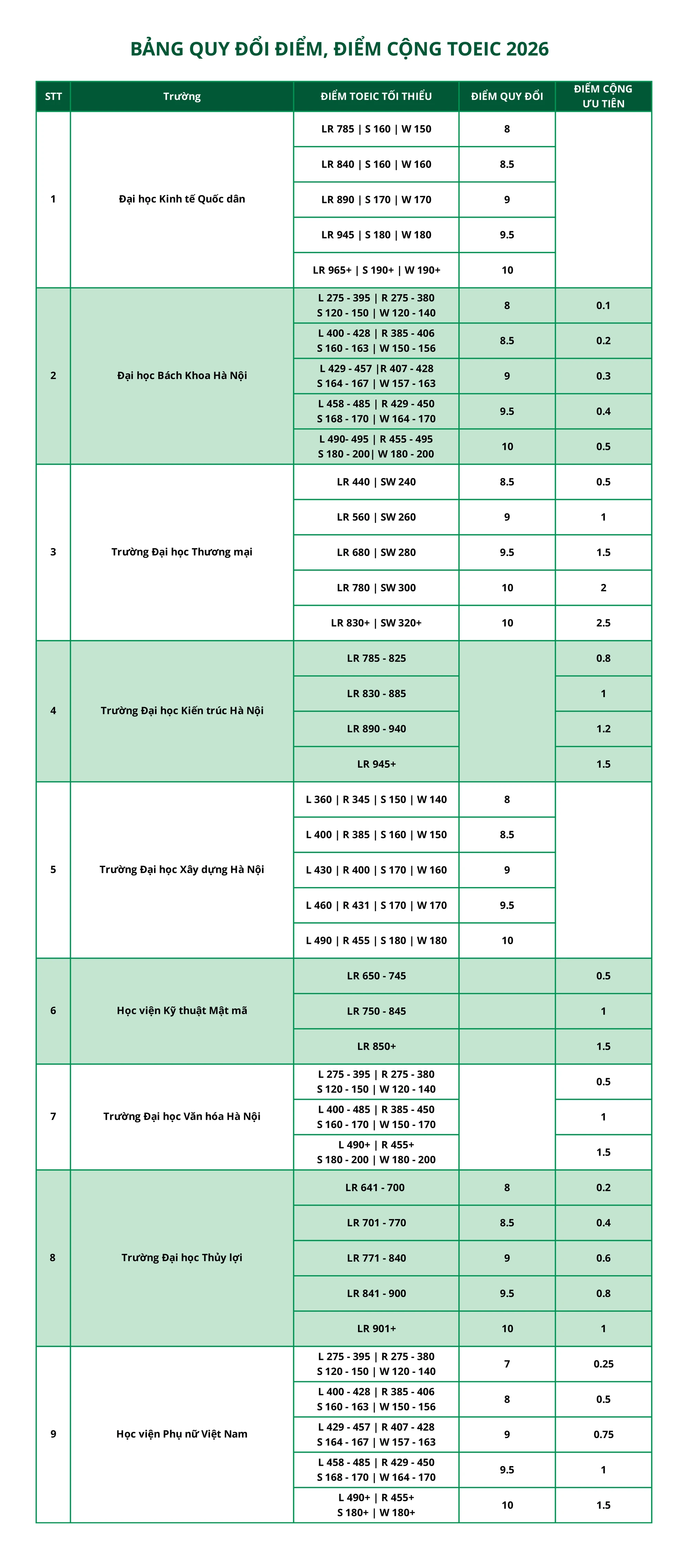 Bảng quy đổi điểm, điểm cộng TOEIC 2026 chi tiết của các trường đã công bố: