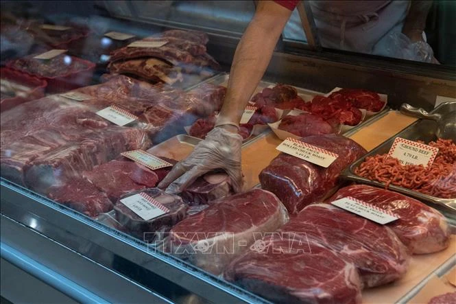 Thịt bò được bày bán tại một chợ ở Washington, DC, Mỹ. Ảnh: AFP/TTXVN