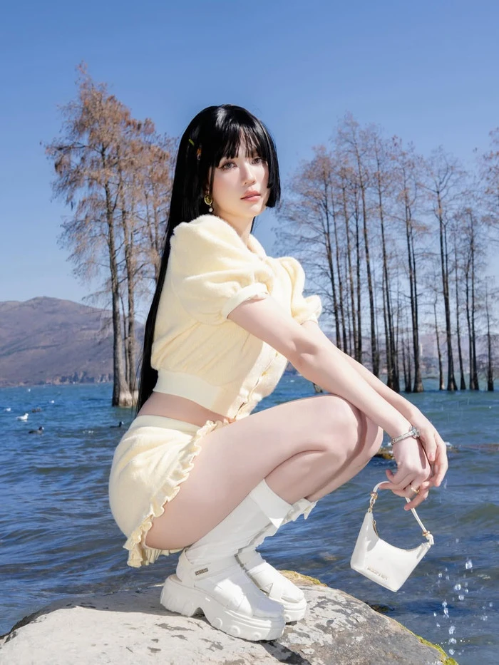 Theo chia sẻ, bộ ảnh được thực hiện tại hồ Nhĩ Hải, một địa điểm nổi tiếng thuộc tỉnh Vân Nam, Trung Quốc. Trong loạt ảnh, Ngọc Trinh xuất hiện với phong cách nhẹ nhàng, nữ tính, hòa mình vào không gian rộng mở của mặt hồ xanh biếc và bầu trời trong.