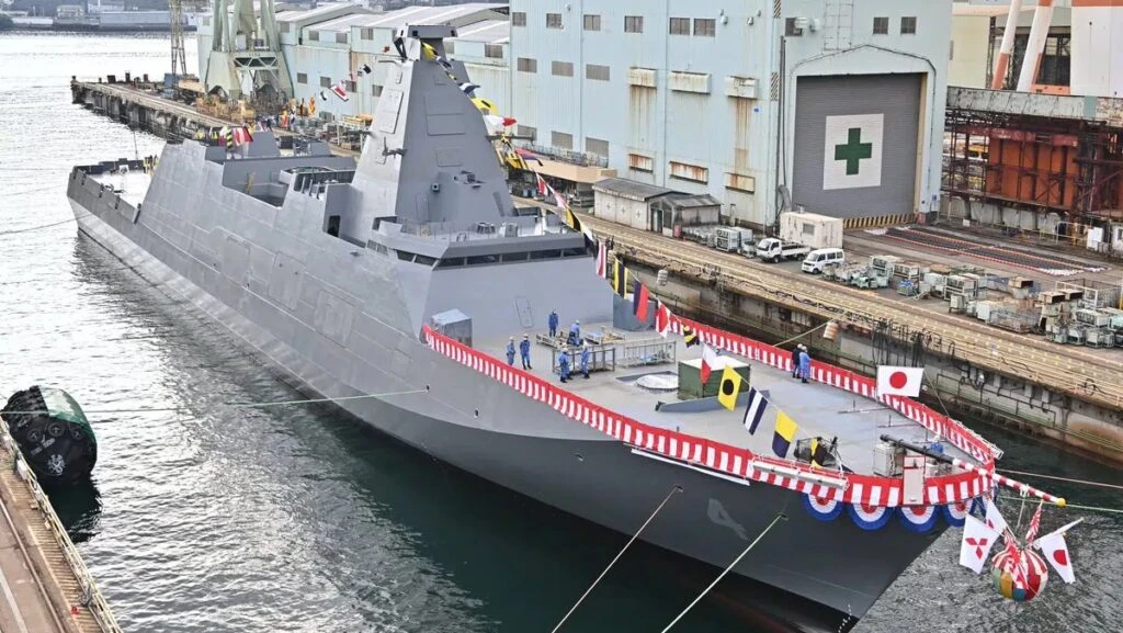 Tập đoàn Công nghiệp nặng Mitsubishi hạ thủy tàu hộ vệ thứ tư thuộc lớp Mogami . ẢNH: LỰC LƯỢNG PHÒNG VỆ BIỂN NHẬT BẢN