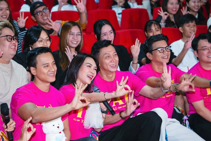 Mỹ Tâm, Mai Tài Phến cùng ê-kíp đoàn làm phim và khán giả tại rạp chiếu phim Tài (Ảnh: FBNV).