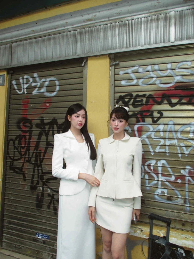 Hoa hậu Trần Tiểu Vy và Thanh Thủy khoe dáng thanh lịch trong bộ ảnh diện trang phục công sở đồng điệu.