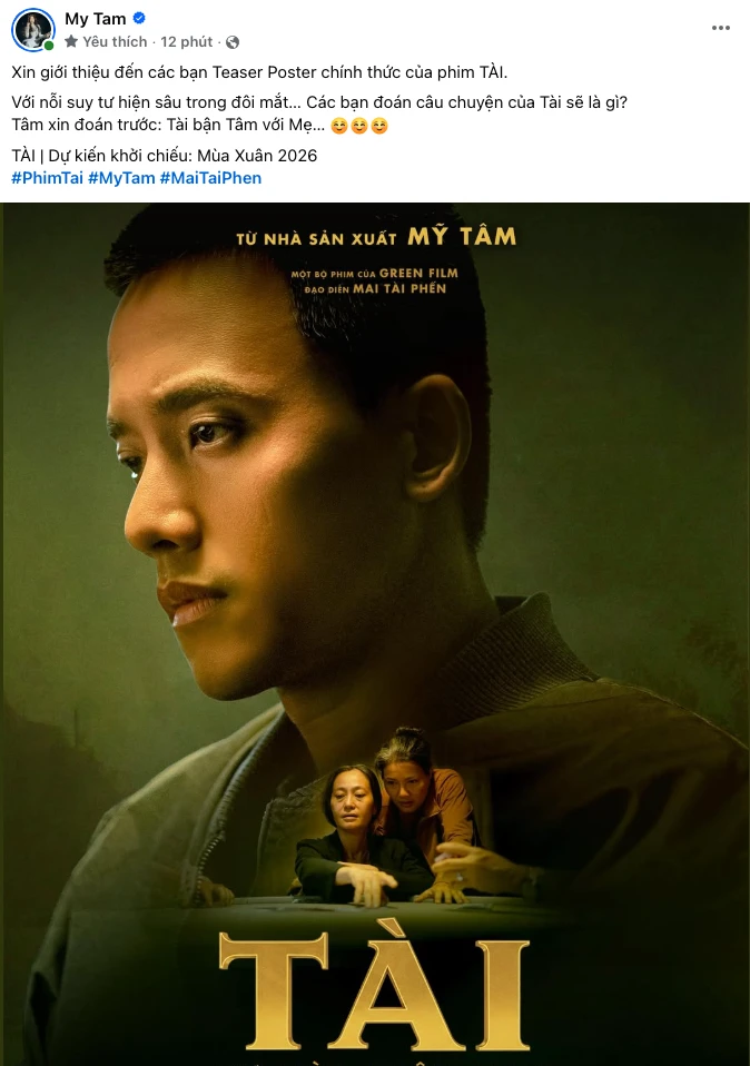 Cụ thể, Mỹ Tâm chia sẻ teaser poster của Tài kèm lời nhắn gợi mở về câu chuyện và số phận nhân vật chính, góp phần tạo nên các cuộc thảo luận sôi nổi trên mạng xã hội. Việc liên tục công bố hình ảnh mới được xem là cách ê-kíp duy trì sự quan tâm của khán giả, đồng thời từng bước hé lộ không khí và màu sắc của bộ phim.