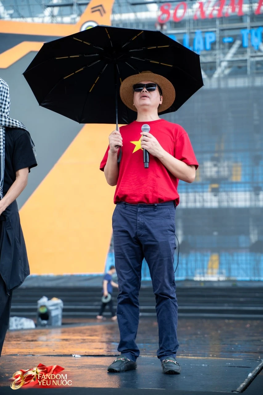 Ngay giây phút đầu tiên chạy tổng duyệt, thời tiết thay đổi thất thường gây ra không ít trở ngại cho ekip và nghệ sĩ. Lúc nắng to, lúc mưa trút xuống như thác, quá trình tập luyện bị gián đoạn ít nhiều. Tuy nhiên, NSƯT Đăng Dương vẫn duy trì tác phong chuyên nghiệp của một "cây đà cây đề" với kinh nghiệm gần 30 năm ca hát. Nam nghệ sĩ cất giọng hát live nội lực qua 2 ca khúc Tự Nguyện và Ca Ngợi Tổ Quốc . NSUT Vũ Thắng Lợi nối tiếp với khúc bi tráng Dấu Chân Phía Trước vừa thiêng liêng, vừa ấm áp.