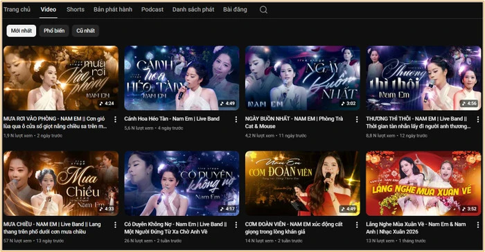 Không cần những chiến dịch quảng bá rầm rộ hay sản phẩm đầu tư quy mô lớn, Nam Em vẫn tạo dựng được chỗ đứng riêng. Các bản cover như Đơn phương, Chưa bao giờ, hay Tay trái chỉ trăng từng ghi nhận hàng chục triệu lượt xem trên YouTube, con số đáng mơ ước với cả những nghệ sĩ chuyên nghiệp. Điều đáng nói, thành công này đến từ một giọng hát thiên về cảm xúc, không quá kỹ thuật nhưng đủ chân thành để chạm đến trái tim khán giả.