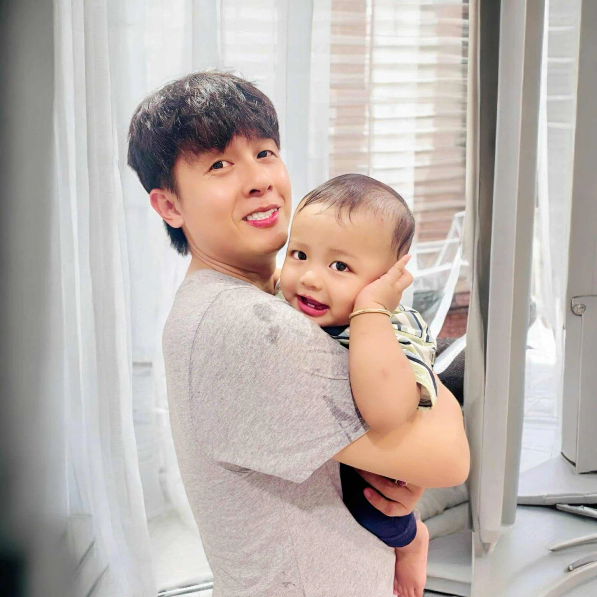 Khoảnh khắc đáng yêu của Hòa Hiệp và con trai. Trước đó, nam diễn viên thỉnh thoảng chia sẻ hình ảnh chụp cùng bé trên trang cá nhân song chưa lên tiếng xác nhận chuyện có con đầu lòng . ẢNH: NVCC