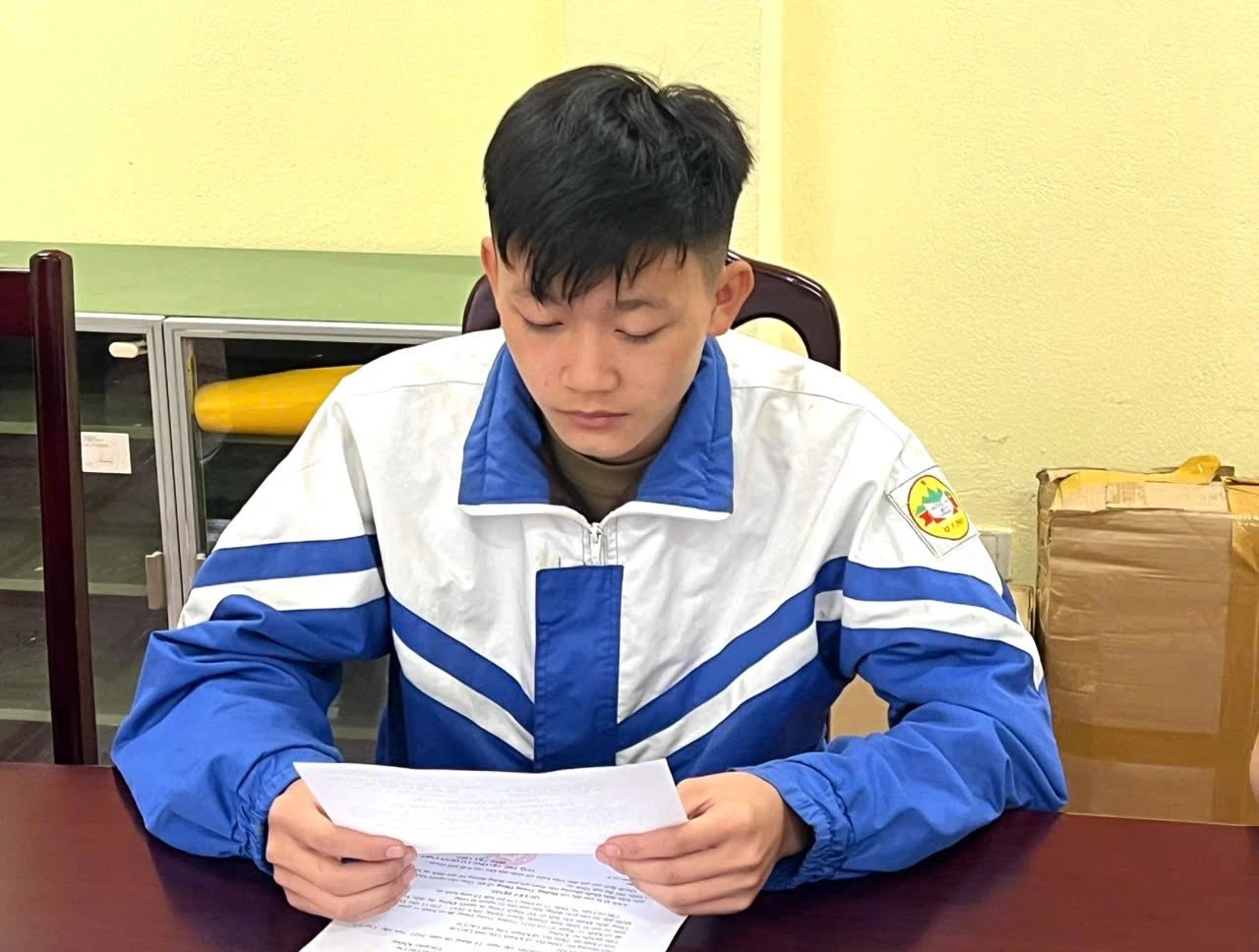 Hoàng Trung Dũng tại cơ quan công an (Ảnh: Công an xã Văn Bàn).