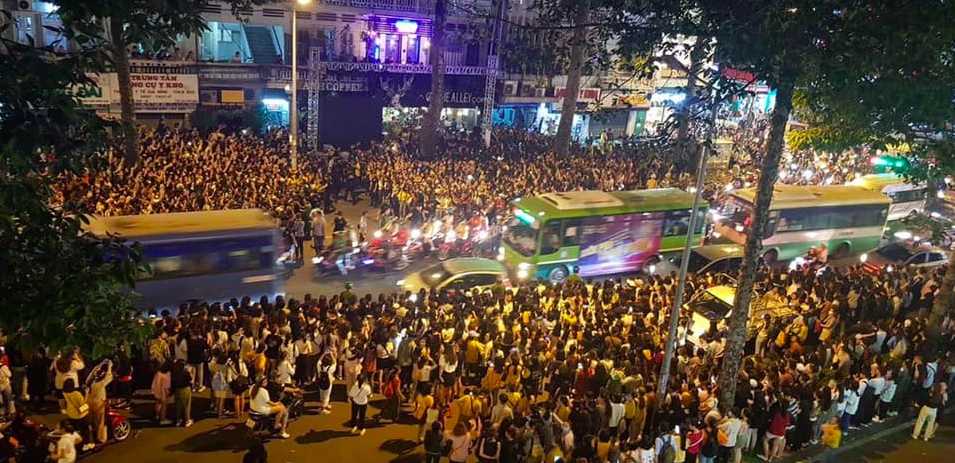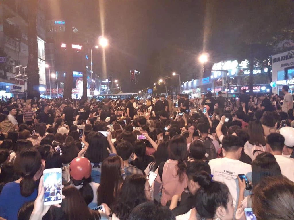 Khán giả vây kín một đoạn đường ở quận 1, TP.HCM chờ Ji Chang Wook xuất hiện tại một sự kiện hồi 2019. ẢNH: FANPAGE JI CHANG WOOK VIETNAM