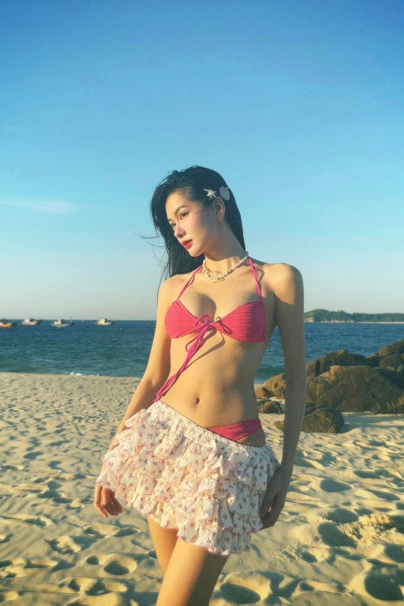 Trên trang cá nhân, Yên Đan không ngần ngại khoe trọn ba vòng cực phẩm qua những thiết kế cắt xẻ táo bạo. Dù là bikini sexy hay váy hai dây lụa là, cô nàng đều khéo léo tôn lên vòng eo thon gọn và vóc dáng cân đối của một vũ công chuyên nghiệp.
