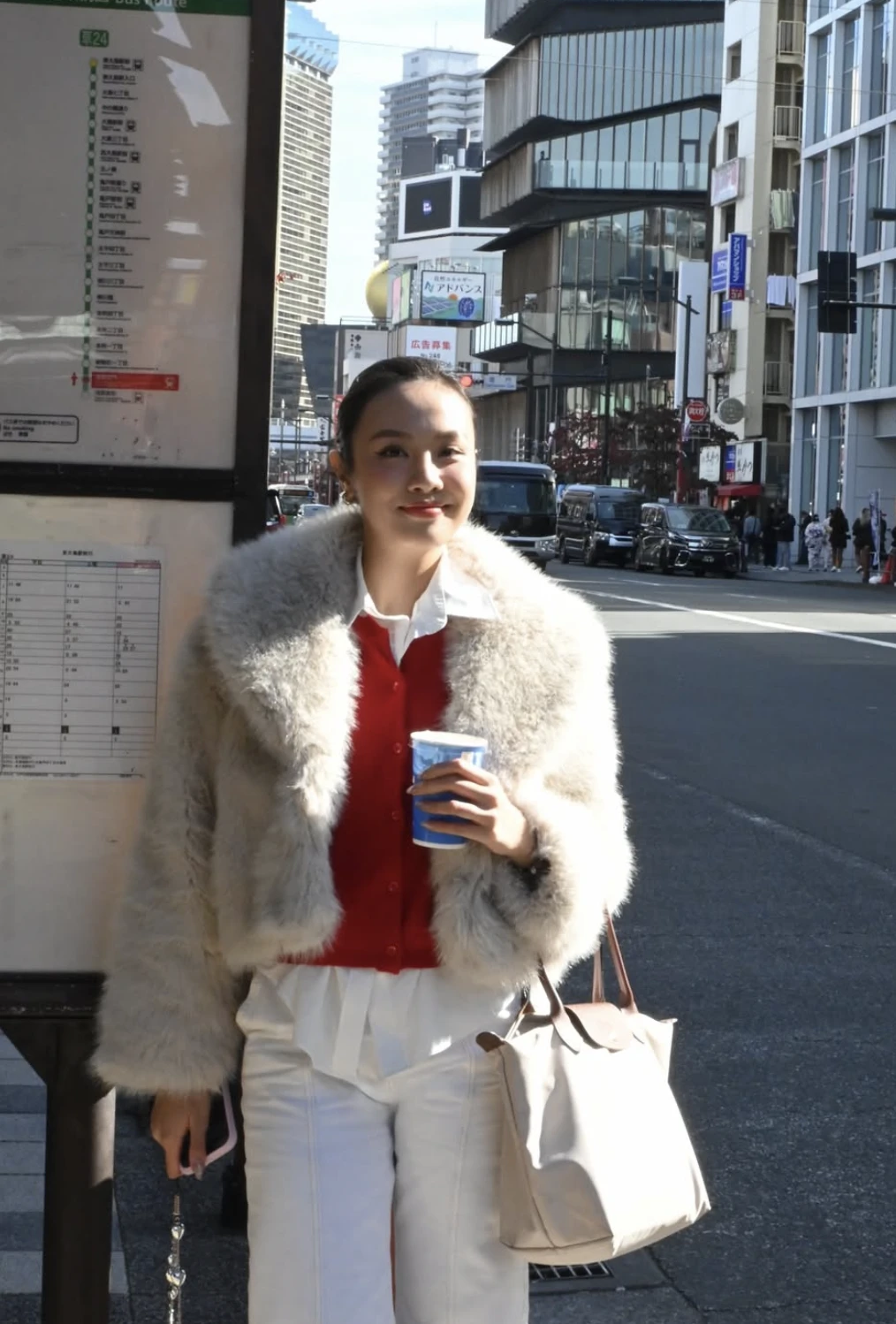 Thiết kế phom lửng gọn gàng giúp tôn tỷ lệ cơ thể, còn phần cổ to bản và chất liệu lông xù tạo hiệu ứng bồng bềnh ấm áp nhưng vẫn rất thời thượng. Khi phối cùng cardigan đỏ, sơ mi trắng và quần sáng màu , chiếc áo khoác lông lập tức trở thành tâm điểm của set đồ nhờ khả năng cân bằng màu sắc và tạo chiều sâu cho từng lớp trang phục.