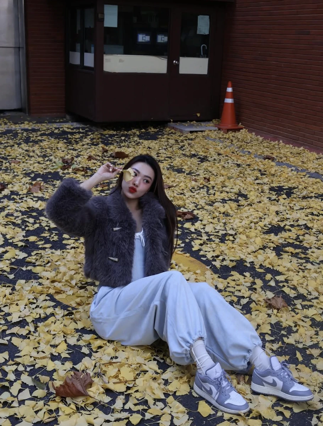 Áo khoác lông màu xám khi phối cùng quần jeans tạo nên sự cân bằng hoàn hảo giữa nét sang trọng và vẻ phóng khoáng, hiện đại. Chất liệu lông mềm mại đối lập với denim khỏe khoắn giúp tổng thể vừa thanh lịch vừa trẻ trung. Để tăng phần năng động, nàng có thể chọn sneakers trắng hoặc xám, tạo sự liền mạch về màu sắc mà vẫn giữ được tinh thần thoải mái.