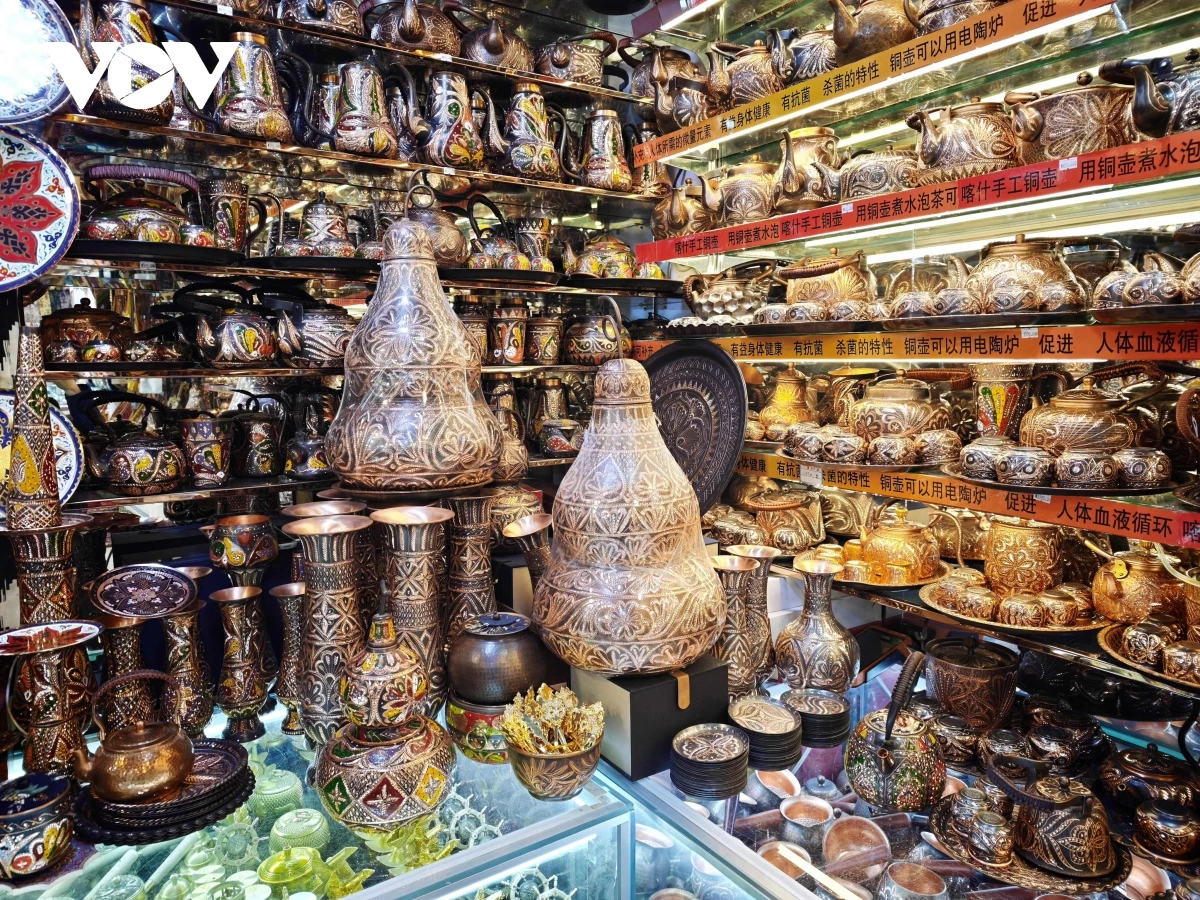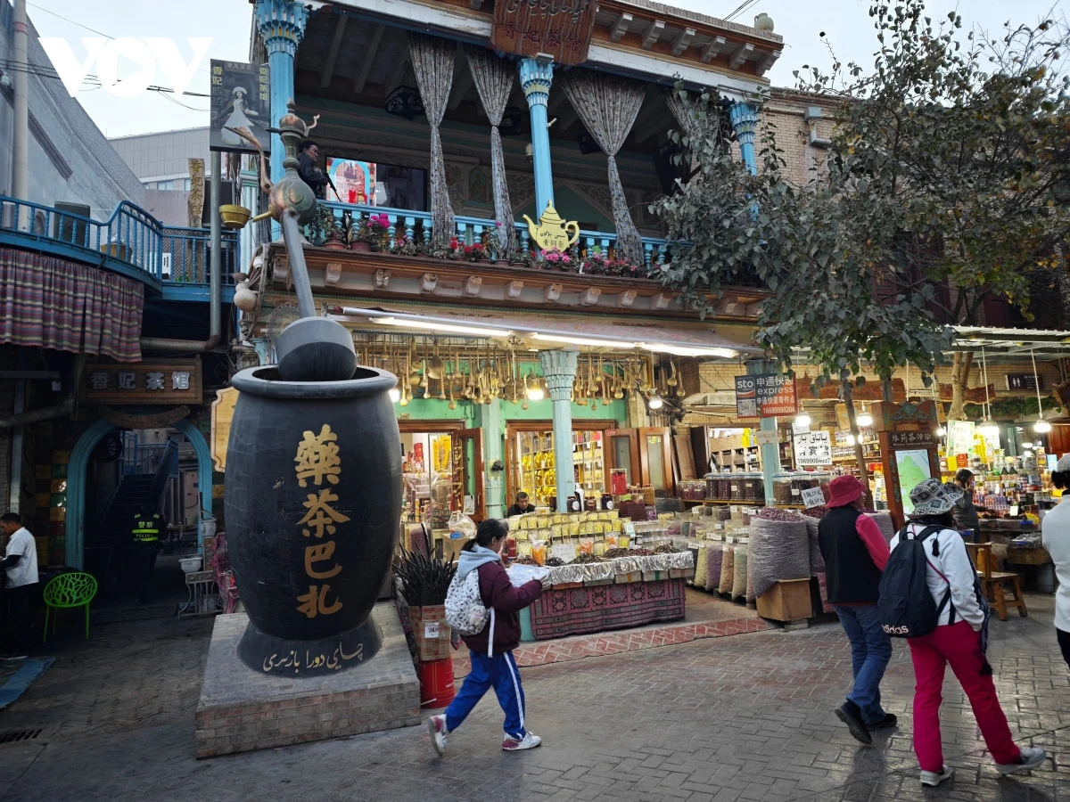 Bazaar bán trà thảo mộc truyền thống (trà làm thuốc) của Tân Cương