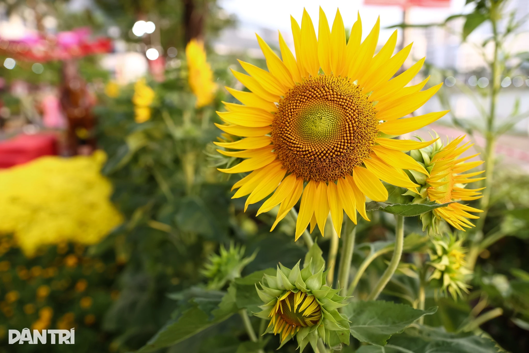 Năm nay, đường hoa Phú Mỹ Hưng bài trí rất nhiều hoa hướng dương, một loài hoa tượng trưng cho sự trường thọ, sức khỏe và may mắn.
