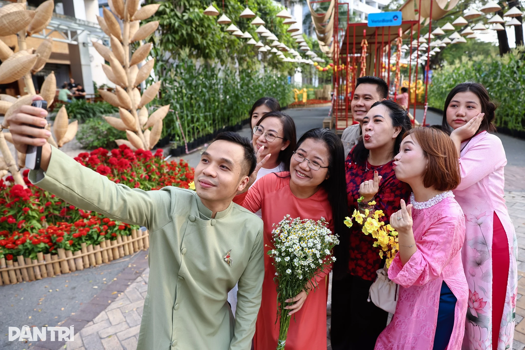 “Năm nào chị em chúng tôi cũng đến đường hoa Phú Mỹ Hưng để chụp ảnh Tết, du xuân. Không gian đường hoa bài trí rất khoa học, đẹp mắt và đặc biệt, linh vật ở đường hoa Phú Mỹ Hưng năm nào cũng được mọi người trong nhóm chúng tôi đánh giá rất cao về mặt thẩm mỹ”, bà Lê Thị Thúy Hồng (54 tuổi) chia sẻ.