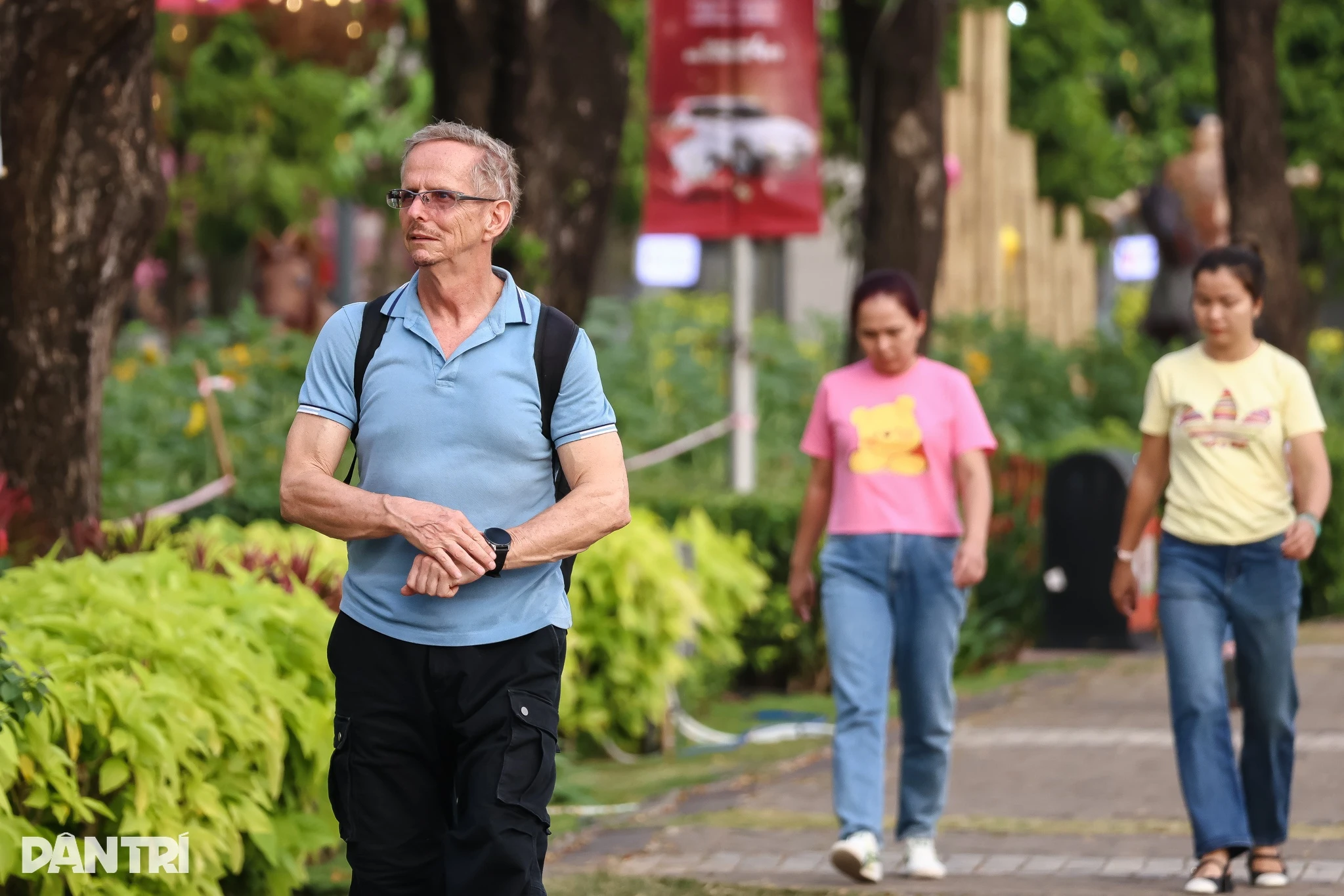 Mặc dù chưa mở cửa, nhiều cư dân trong khu đô thị Phú Mỹ Hưng đã tranh thủ dạo bước, tận hưởng không gian thoáng đãng đặc trưng ven hồ trước khi dòng người đổ về sau giờ khai mạc đường hoa chiều hôm nay.