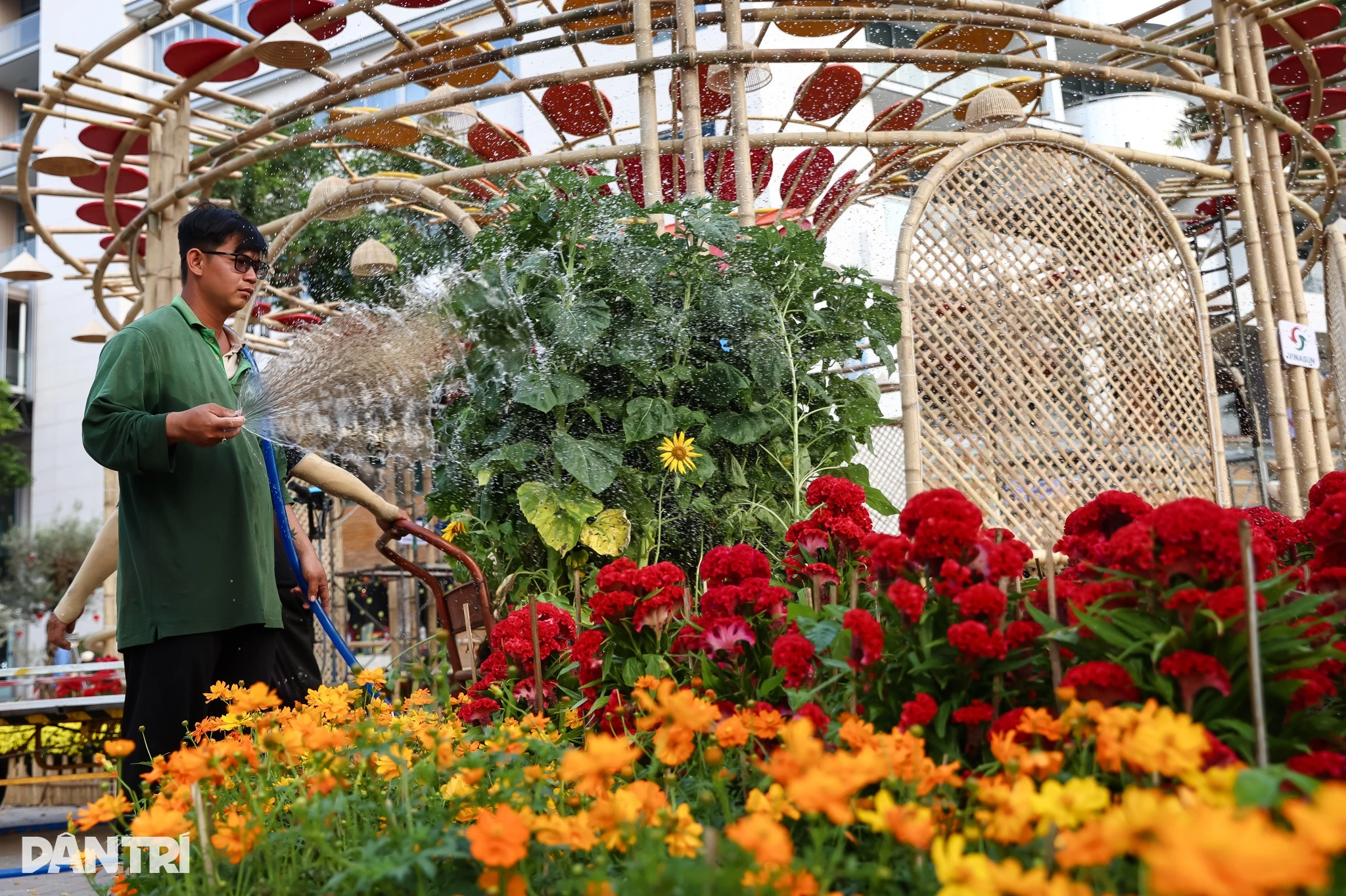 Theo ghi nhận của phóng viên Dân trí, không khí làm việc khẩn trương bao trùm cung đường Hồ Bán Nguyệt khi hàng chục công nhân đang gấp rút hoàn thiện những công đoạn cuối cùng, sẵn sàng cho một mùa xuân “gắn kết” đầy ý nghĩa.
