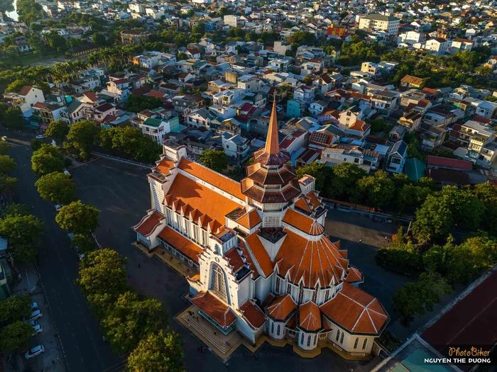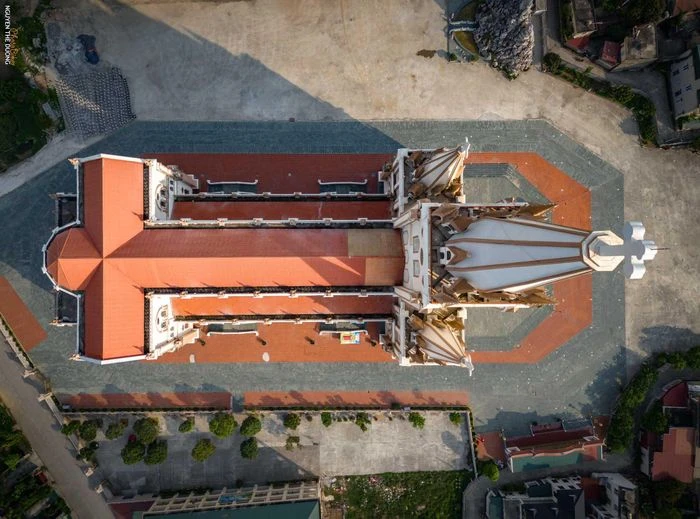 Từ trên cao nhìn xuống, nhà thờ được thiết kế theo bố cục hình cây thánh giá. Ảnh: Nguyễn Thế Dương