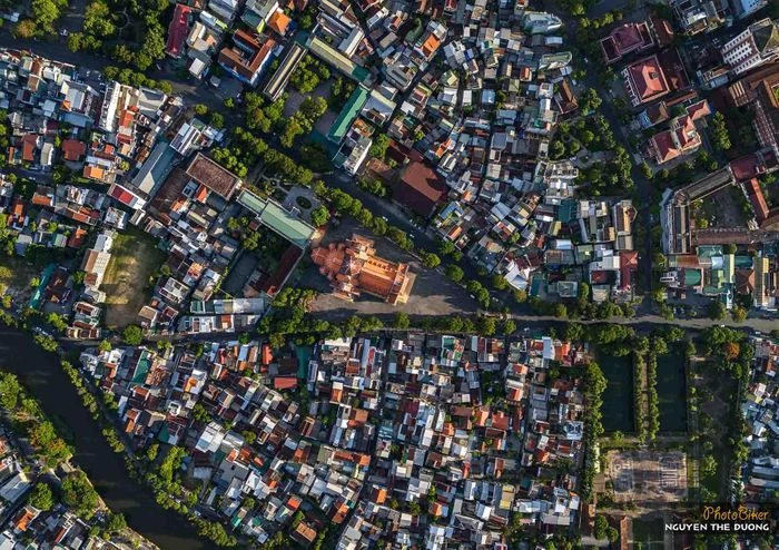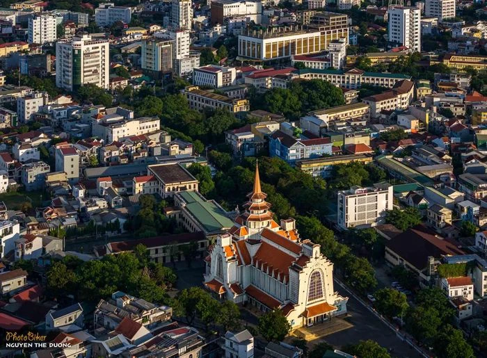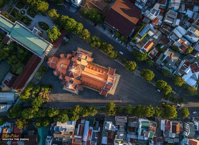 Nhìn từ trên cao, khuôn viên nhà thờ có hình tam giác. Ảnh: Nguyễn Thế Dương