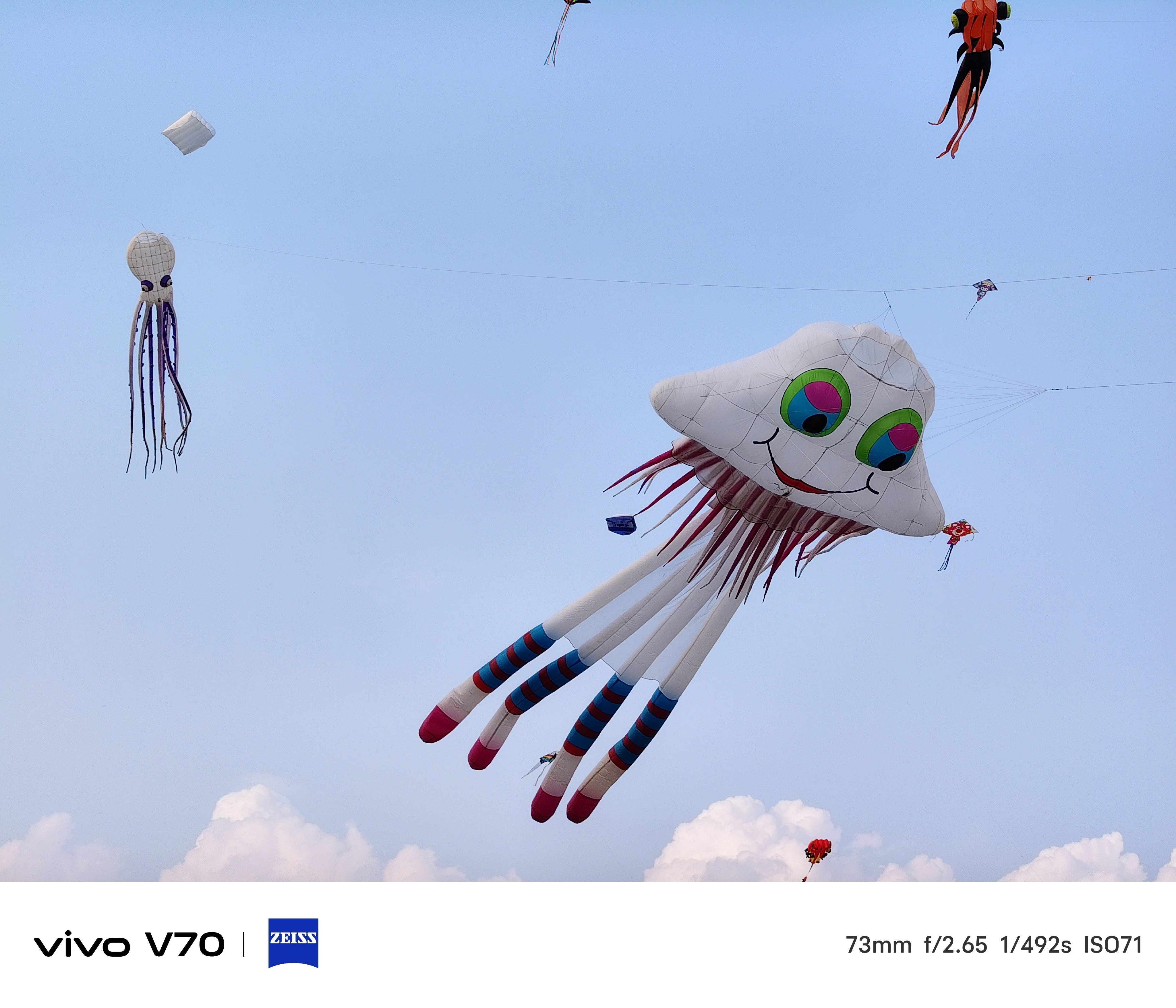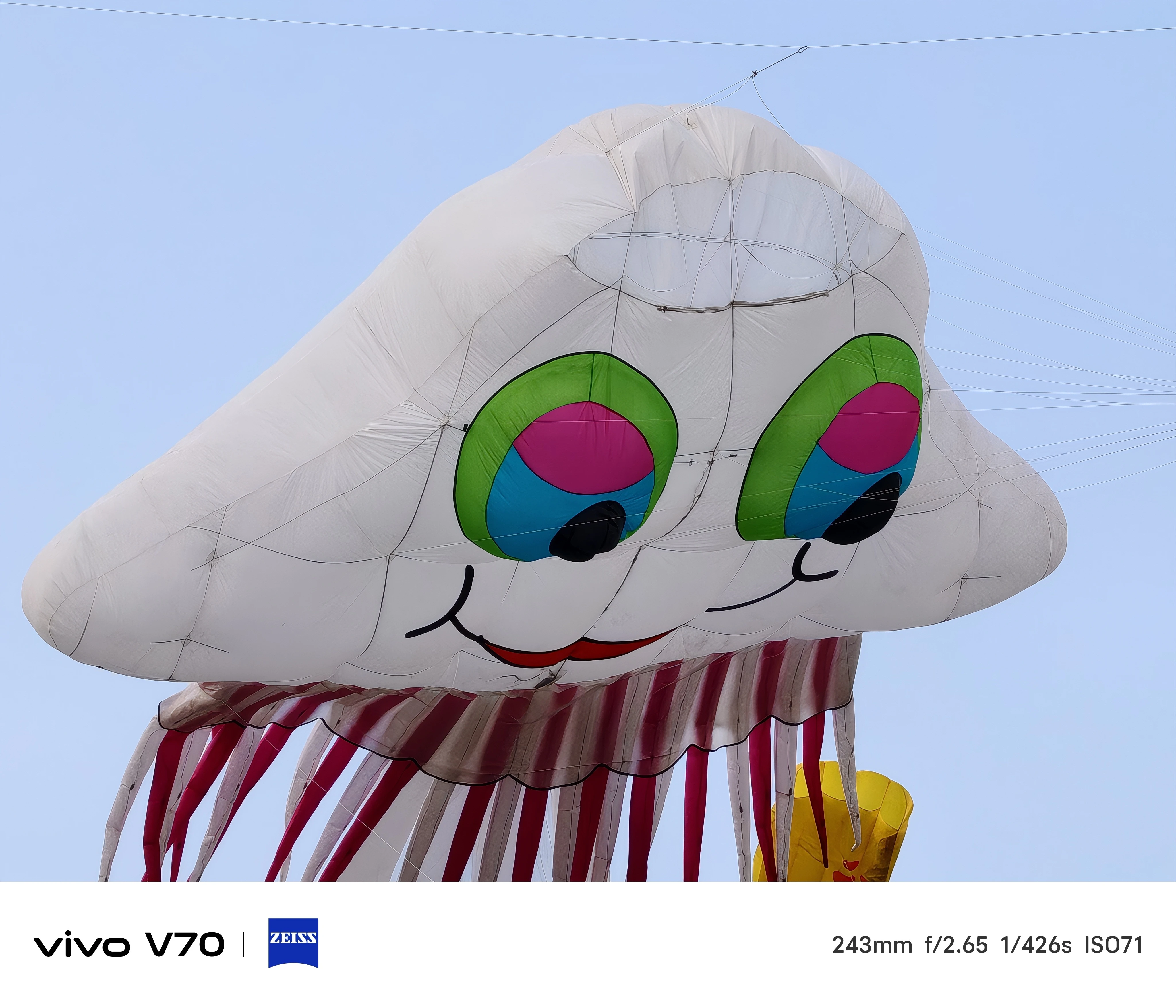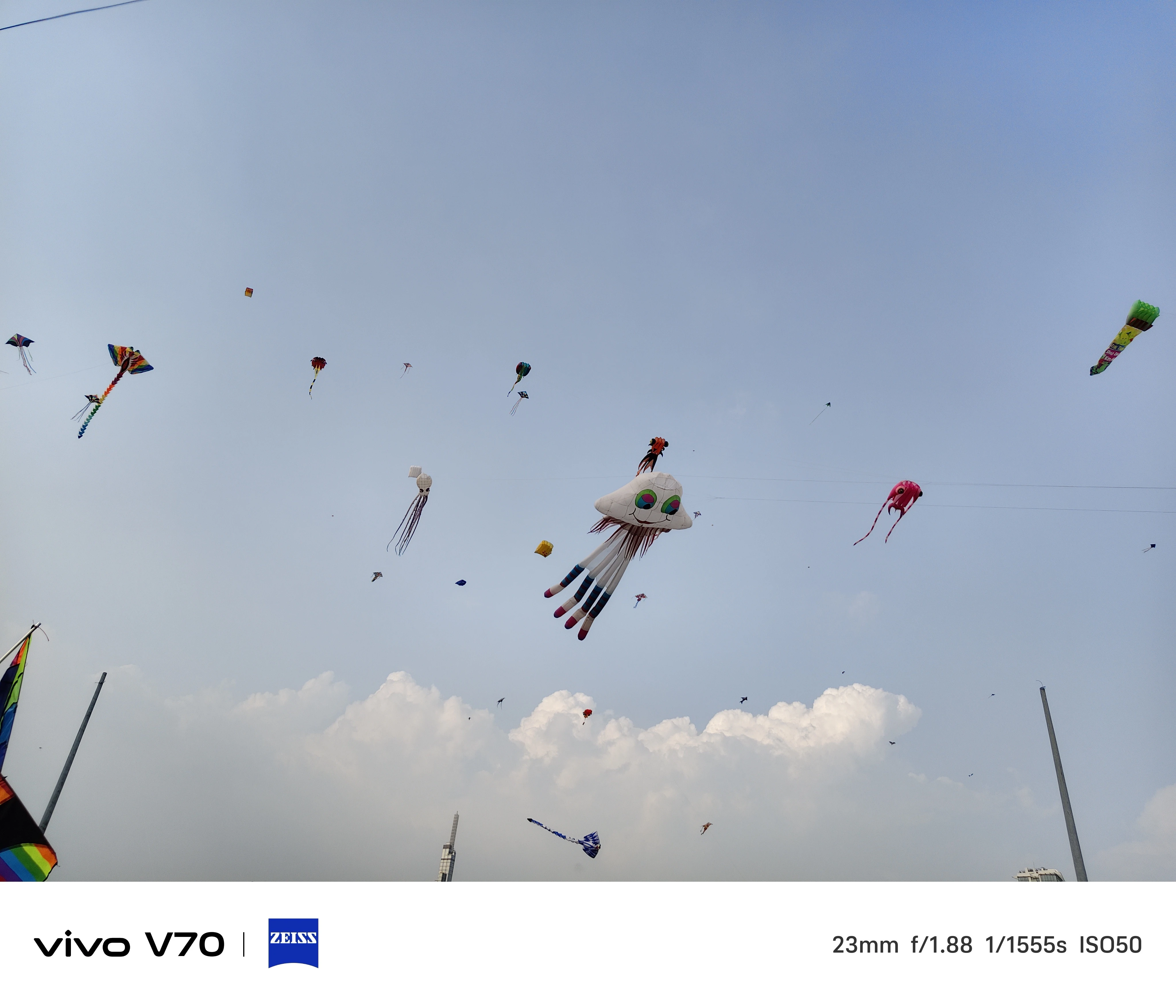 Với bức hình chụp con diều trên bầu trời, máy tái tạo tốt chi tiết chủ thể và phần hậu cảnh bầu trời phía sau. Khả năng cân bằng trắng và tương phản được tái tạo ổn định. Với các bức hình chụp ở mức thu phóng xa như 6x và 10x, chi tiết trên con diều được tái hiện tốt. Thậm chí, hình ảnh có thể thấy rõ những sợi dây cước có kích thước mảnh ở trên con diều.