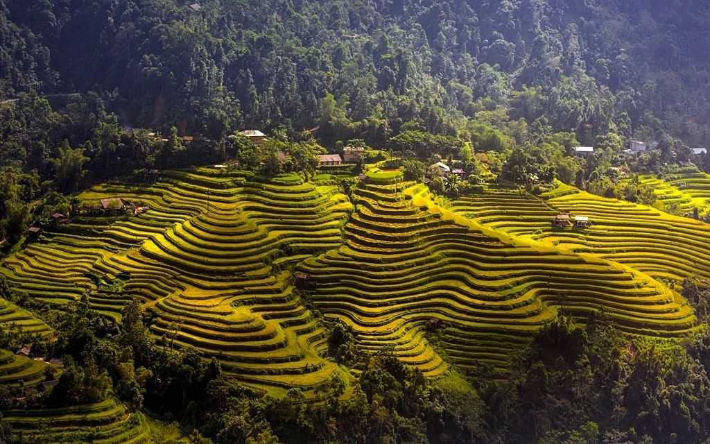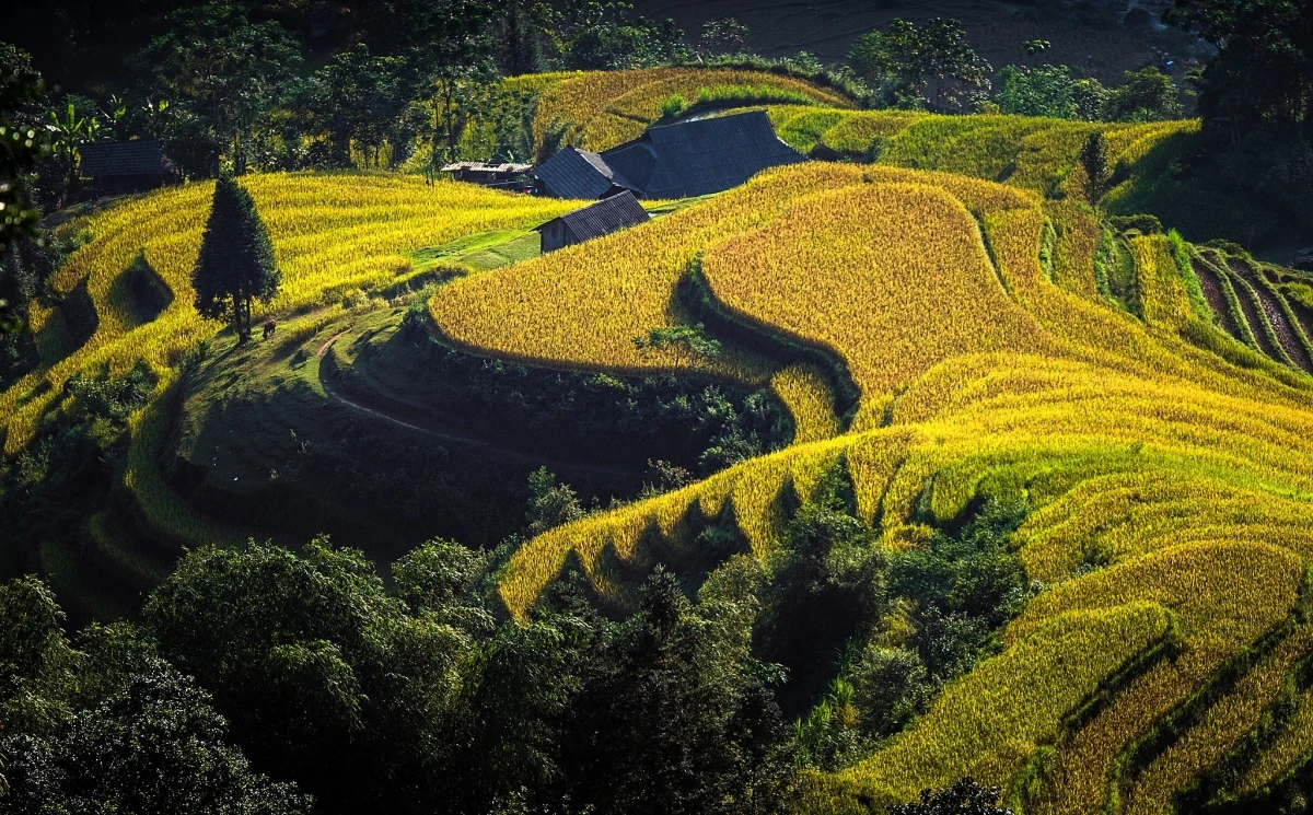 Ngắm ruộng bậc thang vào độ chín vàng ở Hoàng Su Phì