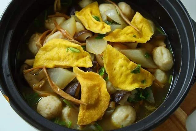 Món canh này này tuy đơn giản nhưng lại rất ngon. Vị umami chủ yếu đến từ hương vị nguyên bản của các nguyên liệu như nấm hương, há cảo trứng, cá viên và hoa huệ khô. Nấu một nồi canh này vừa tươi ngon lại thơm lừng, rất kích thích vị giác. Không chỉ giàu dinh dưỡng mà còn rất phù hợp cho những ai muốn giảm cân, tập luyện thể thao hoặc duy trì lối sống lành mạnh!