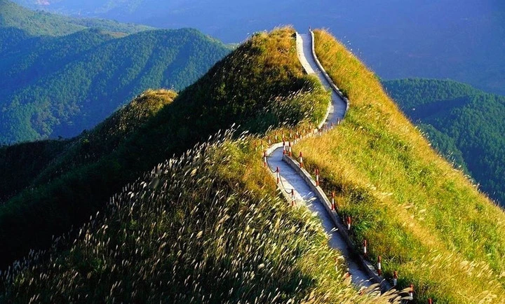 Tháng 12, tháng 1 là những ngày cuối của mùa cỏ lau tại Bình Liêu. Cảm giác đi bộ trên sống lưng khủng long dẫn lên cột mốc 1305, hai bên là những đồi cỏ lau vàng úa trong gió đông tạo nên khung cảnh đầy chất thơ và bi tráng. Đây là thử thách thể lực nhẹ nhàng nhưng phần thưởng là tầm nhìn bao la bát ngát nơi biên cương tổ quốc.