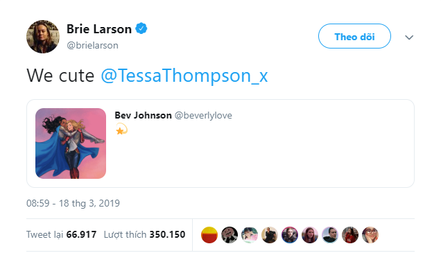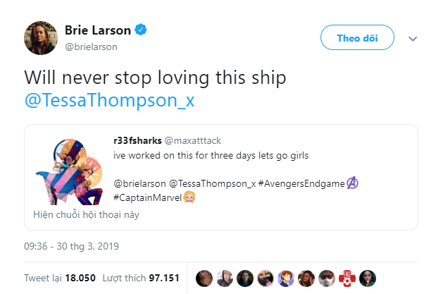 Thứ mà các fan đang mong đợi bây giờ dường như không đơn thuần là mối quan hệ bạn bè thông thường, họ đang kỳ vọng vào một mối quan hệ tình cảm thực sự. Brie Larson còn mong muốn Marvel đẩy nhanh tiến độ để tiến tới việc đại diện cho LGBTQ.
