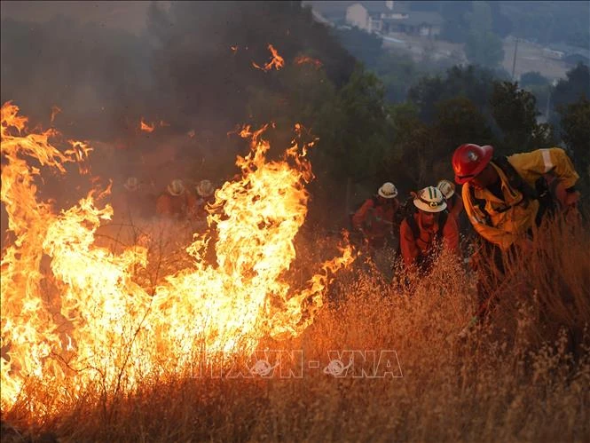 Lính cứu hỏa nỗ lực dập lửa cháy rừng tại Ventura, California, Mỹ. Ảnh minh họa: THX/TTXVN