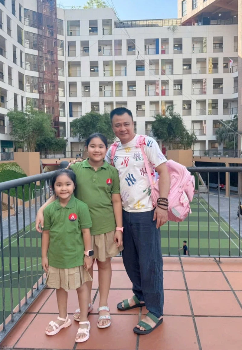 NSND Tự Long háo hức đưa con tới trường: “Mong hai em không buồn ngủ, cả tháng quen giấc muộn rồi”.