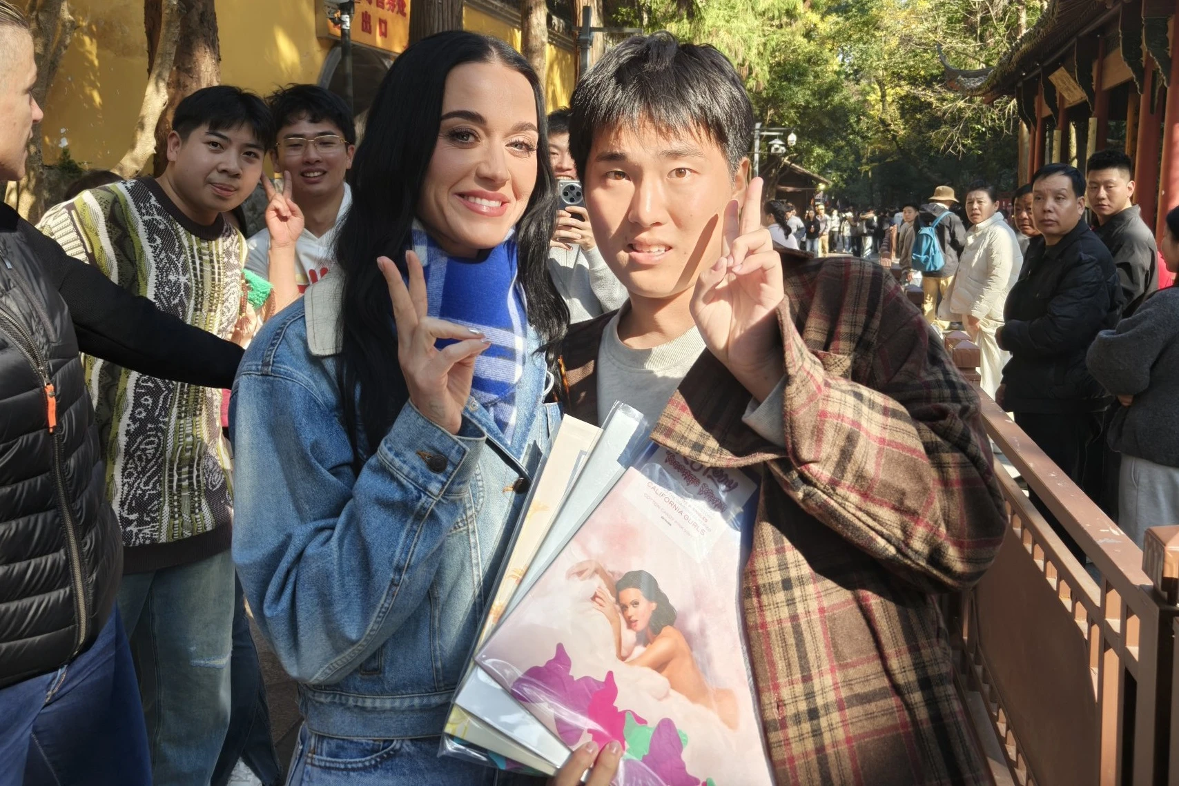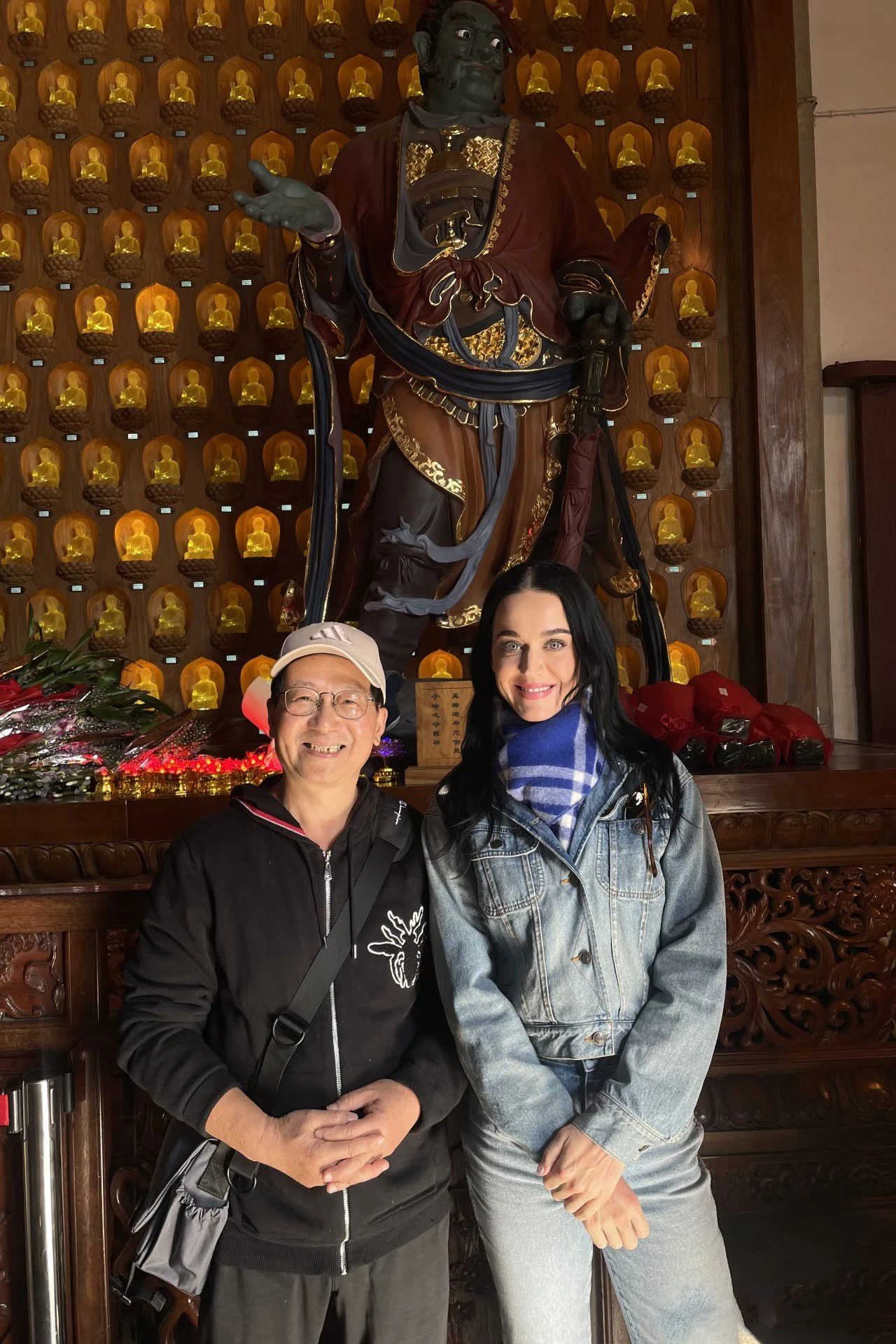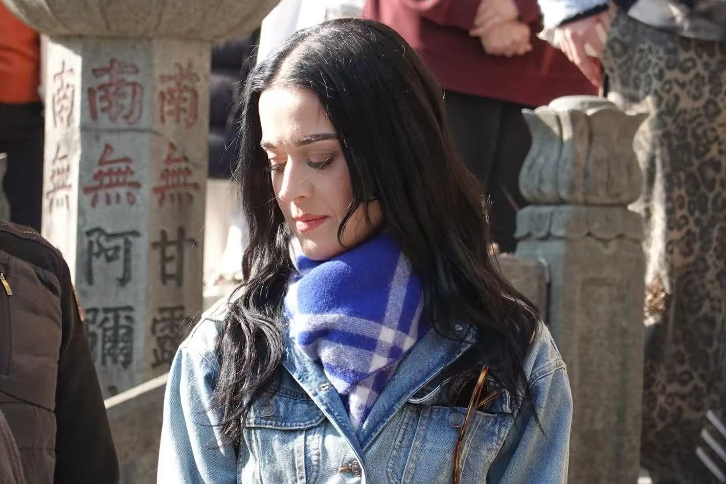| Ngày 23/11, nhiều tài khoản X gây chú ý khi đăng hình ảnh Katy Perry đến thăm chùa Linh Ẩn (Hàng Châu, Trung Quốc). Nữ ca sĩ xuất hiện giản dị với trang phục jeans, quấn khăn choàng cổ. Cô trang điểm nhẹ, để kiểu tóc buông xõa tự nhiên. Ảnh: X/liu_shuo55555. |