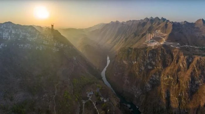 Một cây cầu treo mới tại tỉnh Quý Châu, Trung Quốc được kỳ vọng sẽ trở thành cây cầu cao nhất thế giới khi hoàn thành vào tháng 6/2025.