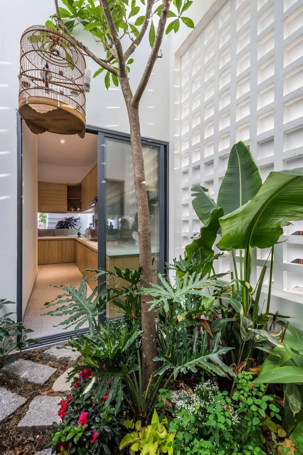 Thiết kế mở kết nối khéo léo giữa nhà chính và hàng hiên – nơi câu chuyện gia đình, tiếng cười trẻ nhỏ và những buổi trà chiều cùng hàng xóm hòa quyện với tiếng ve, tiếng gió lùa. Góc bếp luôn ngập nắng sớm, còn hiên nhà là nơi ngắm hoàng hôn mỗi chiều, khiến mỗi khoảnh khắc đều đong đầy cảm xúc .
