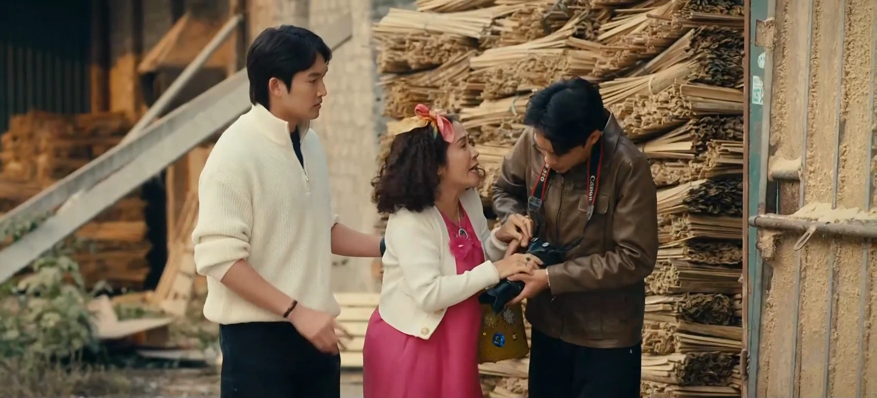 Một người bạn của Mai trong lúc mải mê cầm máy ảnh chụp lại khung cảnh xưởng hương đã vô tình xảy ra va chạm với bà Diện, khiến bà ngã xuống ao.