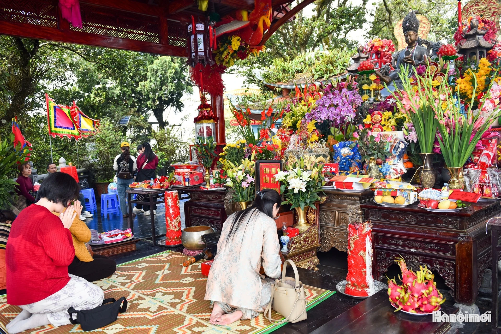 Thành kính khấn lễ trước khi tiếp tục lên đền Thượng.