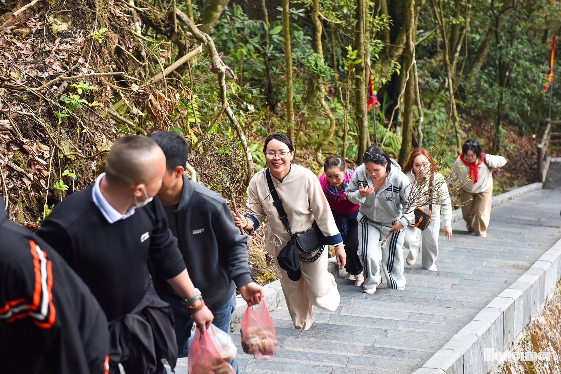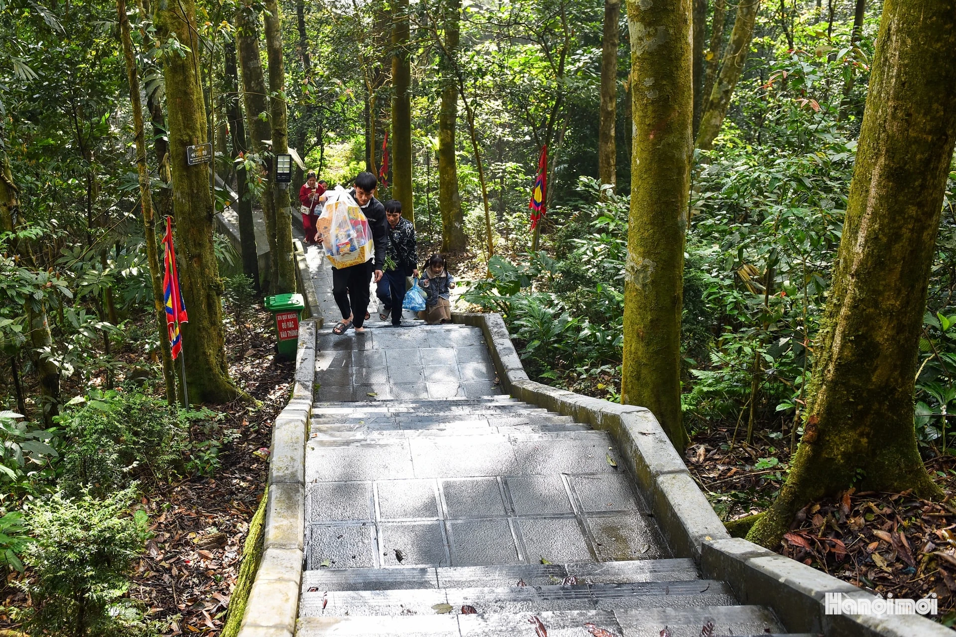 Những bậc đá nối dài hun hút giữa rừng già. Mỗi bước chân mang theo ước vọng bình an cho một năm mới.