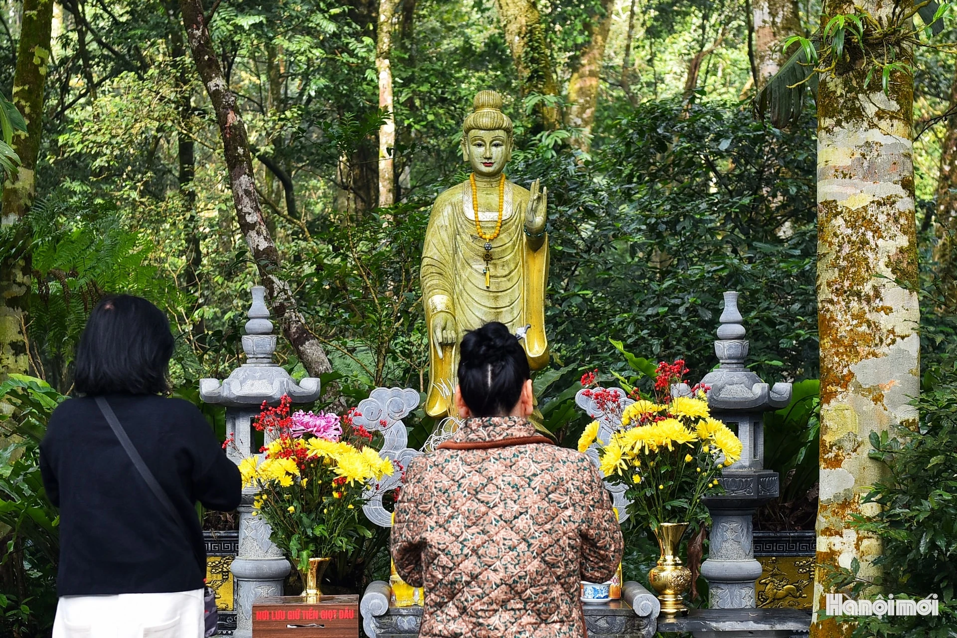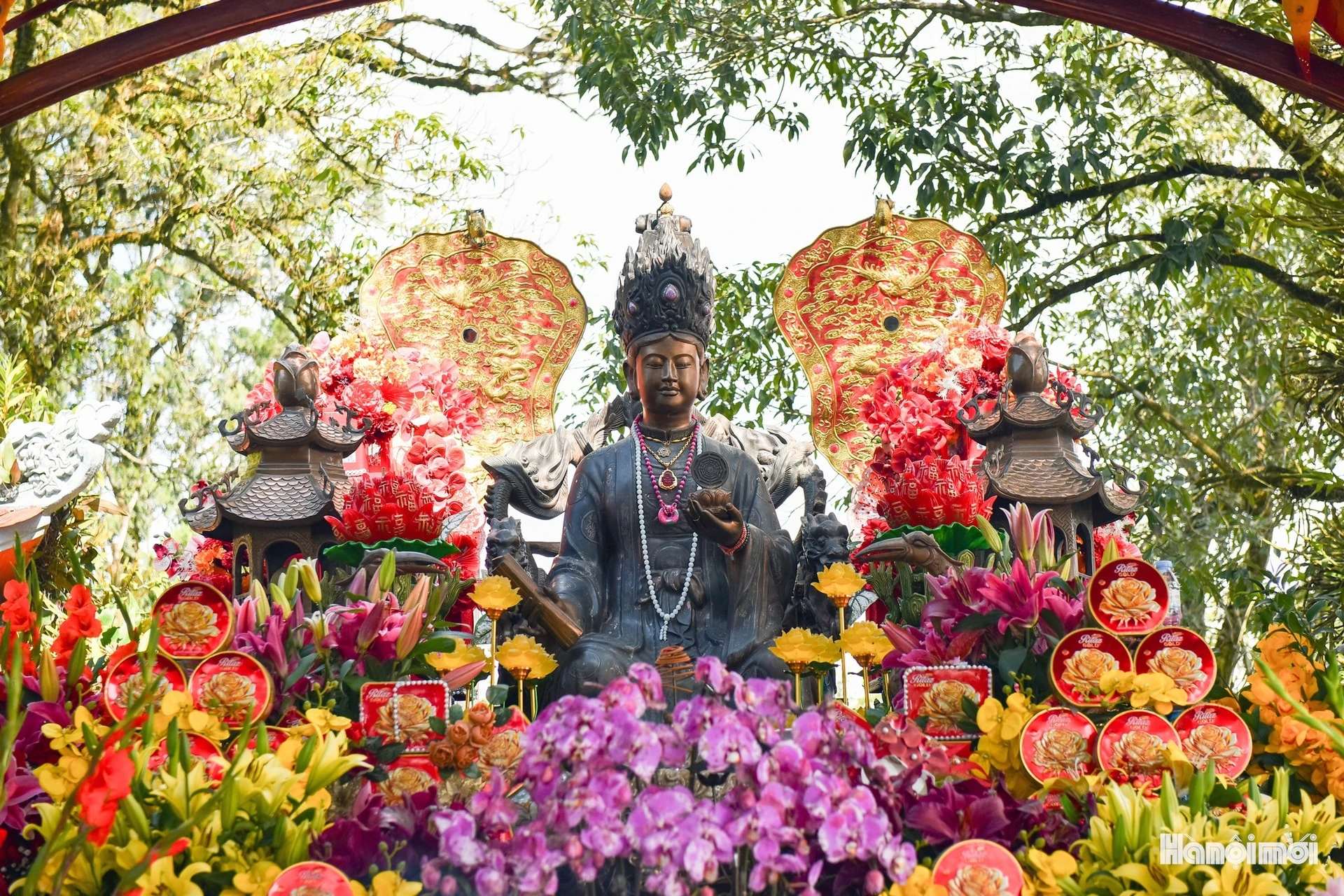 Bức tượng đồng linh thiêng – nơi du khách chiêm bái, cầu mong sự che chở trong năm mới.