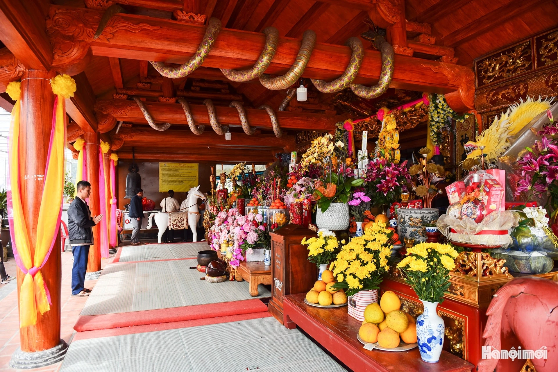 Bước chậm lại giữa điện miếu tôn nghiêm, du khách thành kính dâng hương tưởng niệm các bậc tiền nhân, gửi gắm ước nguyện về một năm mới cầu quốc thái dân an, gia đình hưng thịnh.